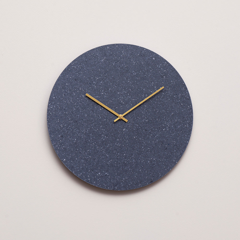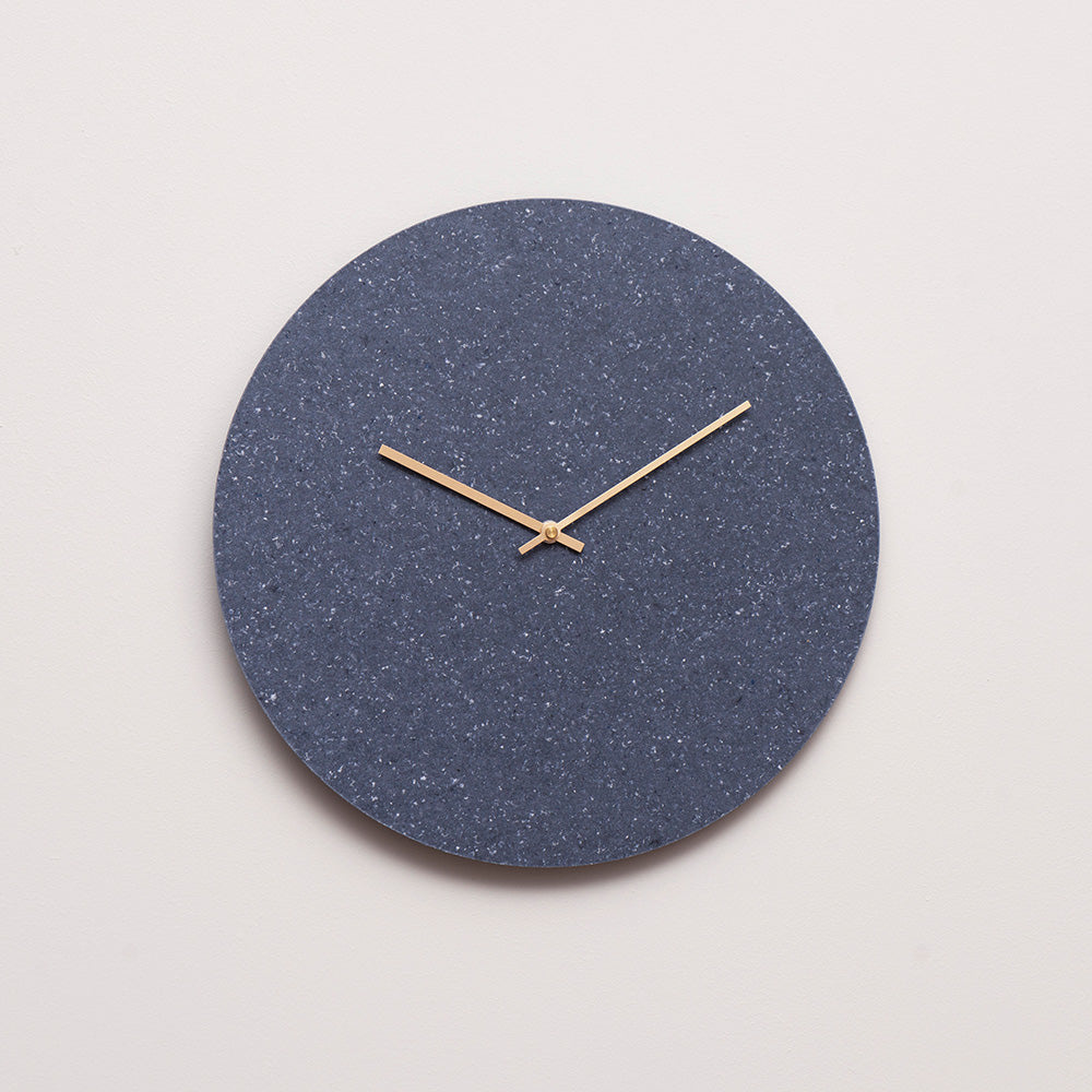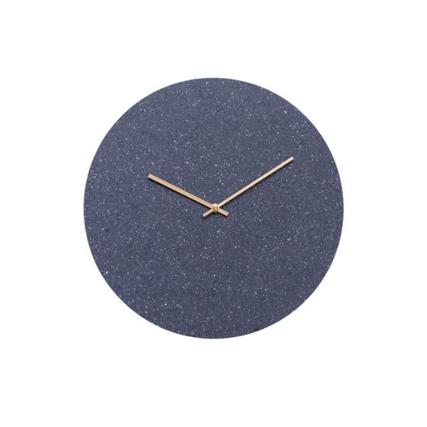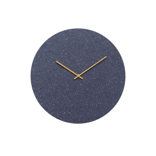 Det runde, blå vægur er fremstillet af en kerne af genanvendte hospitalsartikler og et yderlag af rester fra Kvadrats produktion af møbelstof. Designet er minimalistisk og enkelt og passer til de fleste moderne hjem og til den miljøbevidste boligejer. Den bløde overflade i blå tilfører farve til hjemmet.