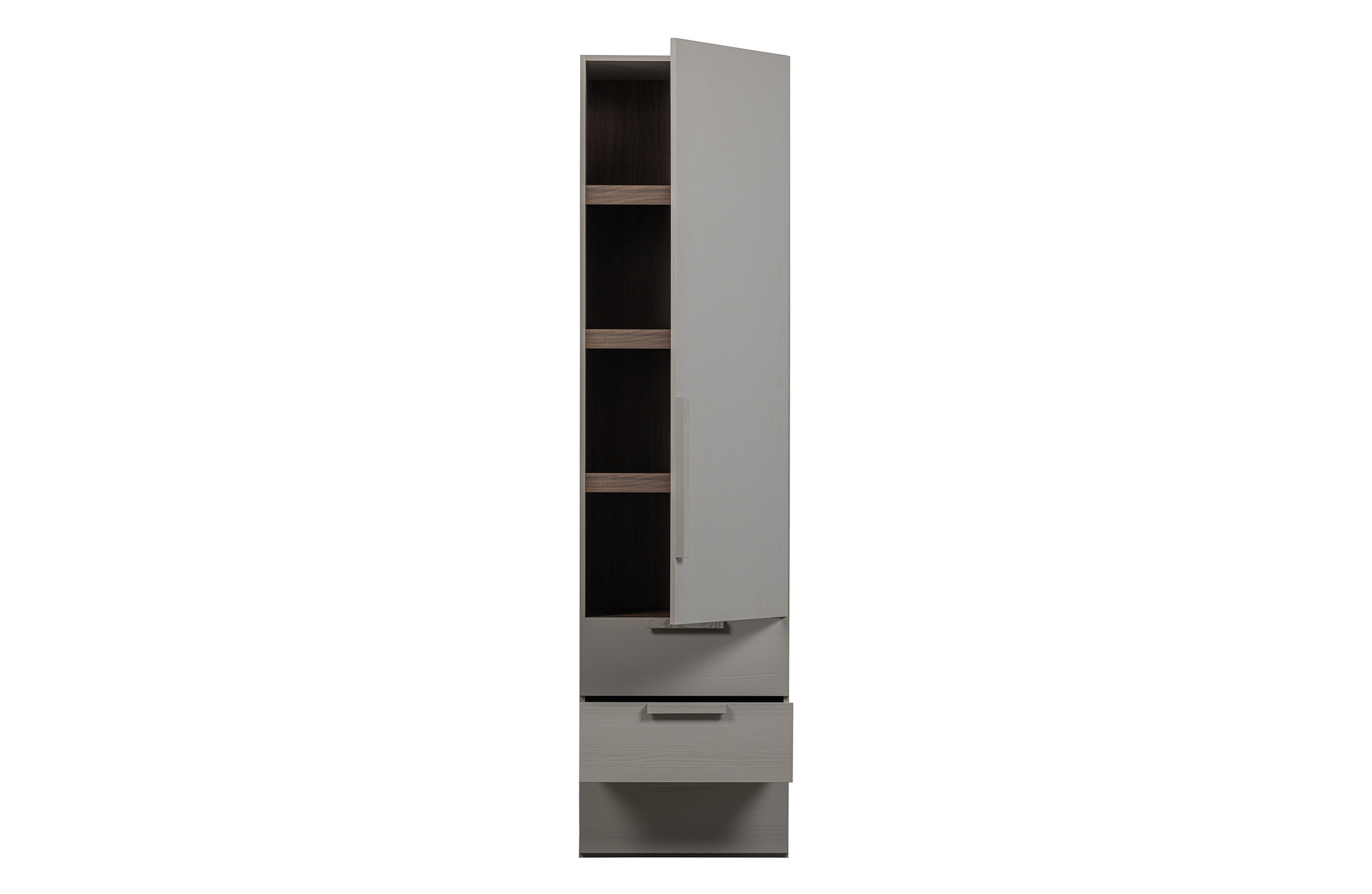 - Slimline wardrobe in light grey - Made of walnut decor - Available as 1, 2 and 3 door wardrobe - H 210 cm x W 55 cm x D 58 cm The sturdy Rens wardrobe collection by Dutch brand WOOOD is very suitable for multiple interior styles and atmospheric bedrooms