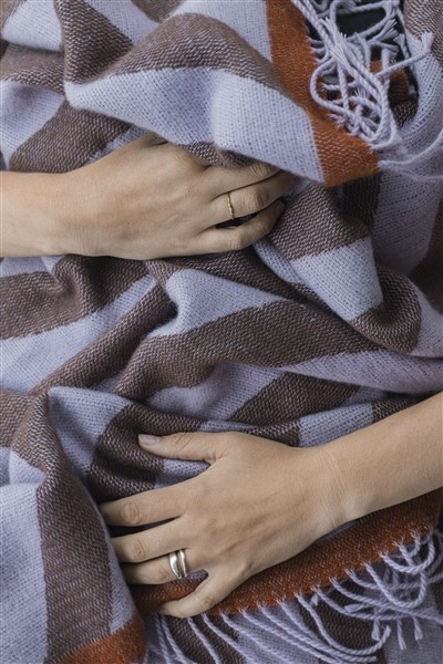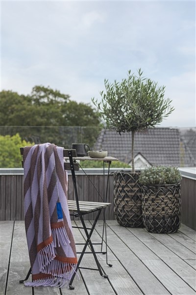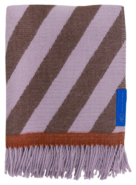Indulge in the warm embrace of the Mette Ditmer RETRO throw in rich brown and lilac. This distinct throw, with its beautiful diagonally striped pattern, adds a touch of sophistication to your living spaces.