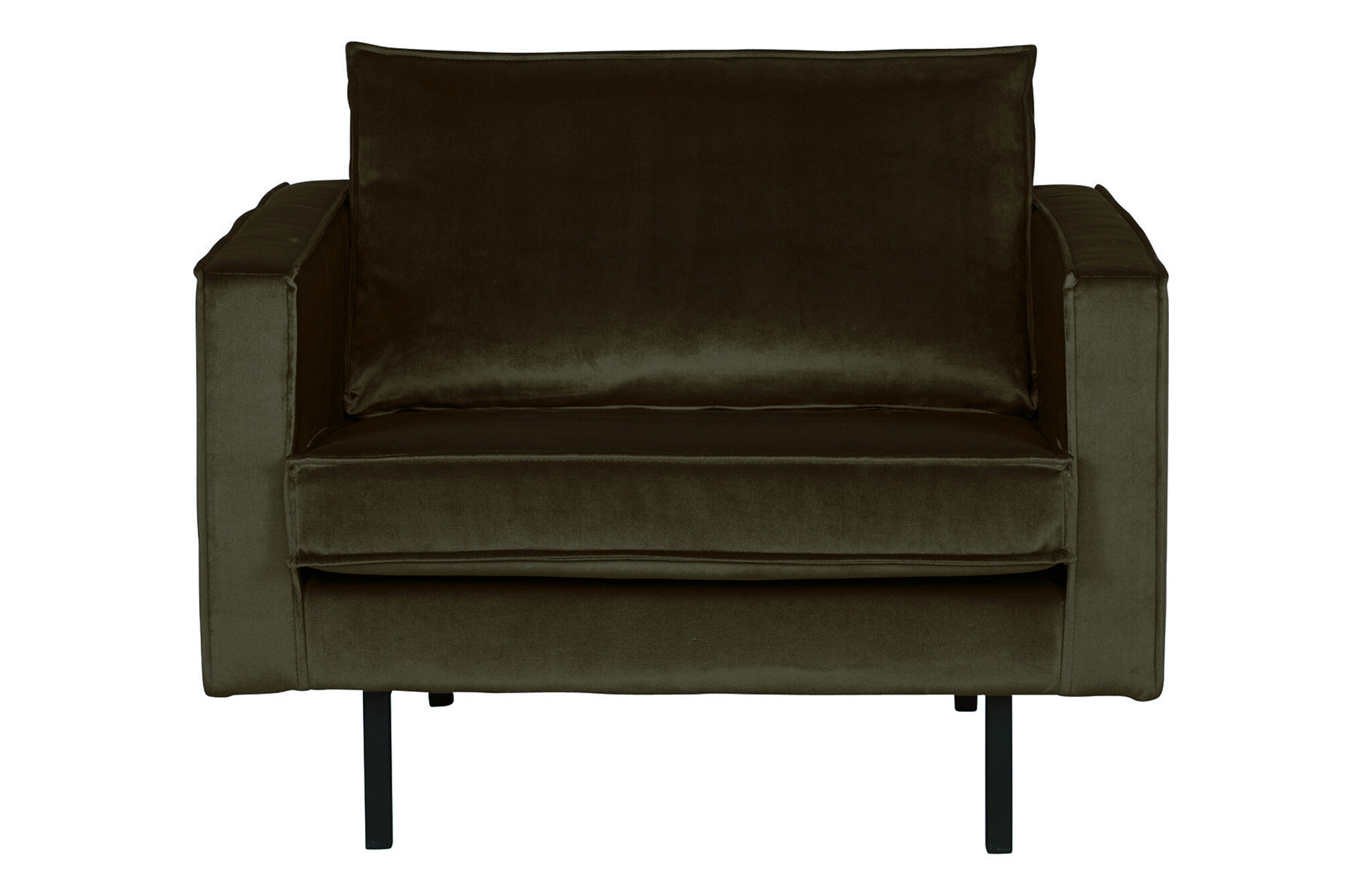 Not available for the UK. This article is not Fire Retardant. - Tough and modern design - Part of the famous Rodeo series - Covered in rich velvet (100% polyester) - H 85 cm x W 105 cm x D 86 cm The Rodeo series by Dutch interior label BePureHome is modern, sturdy and contemporary. The Rodeo's are spacious and offer a wonderfully firm seating comfort. The high leg frame makes the furniture look slender and airy. Rodeo is known for its timeless combination of colours and materials, inspired by the 50's and given a modern twist. Dare to go Rodeo! Material The Rodeo easy chair is made of a combination of solid wood [fsc], chipboard [fsc], polyurethane foam with a density of 25 kg/m3 and a zigzag spring. The seat contains a polyurethane foam with a density of 30 kg/m3 (T3037). The backrest consists of a combination of 70% cut foam and 30% silicone. This Rodeo is upholstered in a rich velvet. Our Jarra velvet fabric has a luxurious look and feel. The fabric feels fine and has a nice light sheen. The Jarra velvet consists of 100% polyester and has a full and heavy quality. The material is therefore suitable for intensive use (Martindale 100,000). Besides the stylish design, the velvet fabric remains beautiful for a long time. Our Jarra fabric will not pill easily and is colourfast. The fabric is, to the surprise of many, a very easy fabric to maintain. Dimensions The Rodeo has a total height of 85 cm, a width of 105 cm and a depth of 86 cm. The seat height is 45 cm and the seat depth is 60 cm, providing a fine, supportive seat. The seat width of this armchair is 81 cm and it has a loose seat and back cushion. The armrests have a width of 12 cm and a height of 68 cm, measured from the floor. The metal legs are 20 cm high. The armchair can carry 120 kg. Maintenance Small stains can easily be removed by dabbing with an absorbent cloth. Larger stains can be easily removed with a mild detergent and a microfibre cloth. If necessary, use a hair dryer to dry the stain more quickly. Keep enough distance so that the fabric does not burn. Afterwards, the fabric can be brushed with a velvet brush. This brush is very good for weekly maintenance. Impregnation is not recommended. If impregnation is deemed necessary it is at your own risk. Delivery The Rodeo easy chair will be delivered in one package. The legs are easy to attach with the aid of the supplied assembly instructions. To protect hard floors, place felt glides on the underside of the legs. Orders for this product cannot be cancelled. Material: 100% Pes