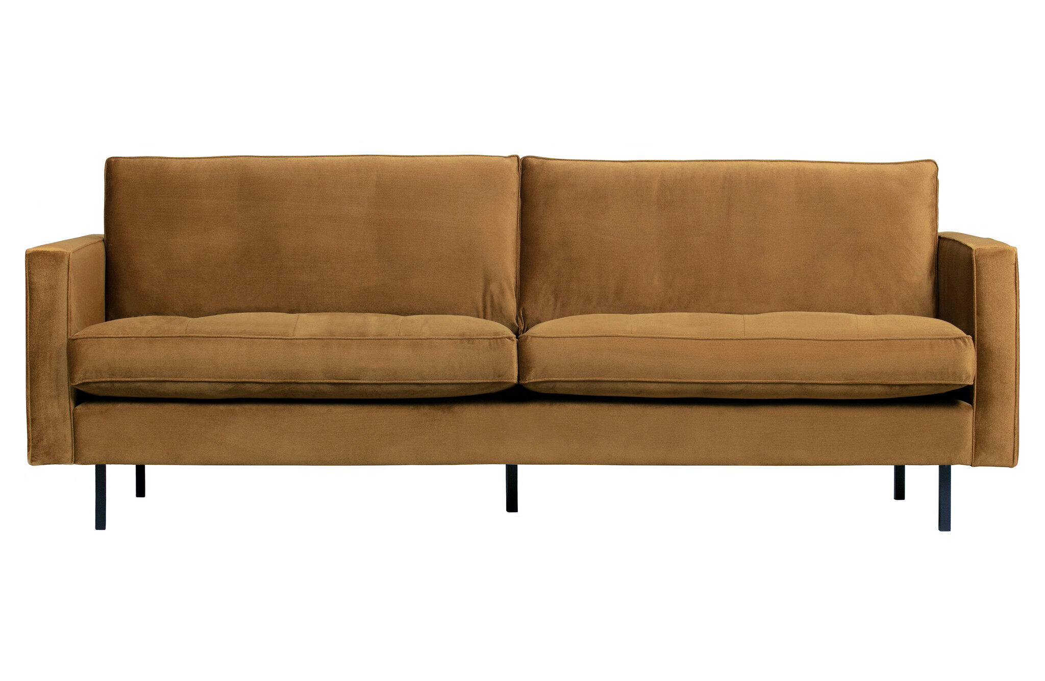 Not available for the UK. This article is not Fire Retardant. - Classic and generous design - Part of the well-known Rodeo Classic series - Covered in a rich velvet (100% polyester) - H 83 cm x W 230 cm x D 88 cm The Rodeo series by Dutch interior label BePureHome is modern, sturdy and contemporary. The Rodeo's are spacious and offer a wonderfully firm seating comfort. The high leg frame makes the furniture look slender and airy. Rodeo is known for its timeless combination of colours and materials, inspired by the 50's and given a modern twist. The classic twist of the Classic Series is characterized by the outward stitched seams and the quilted seat cushions. Dare to go Rodeo! Material The Rodeo Classic sofa is made of a combination of solid wood [fsc], plywood [fsc], chipboard [fsc], polyurethane foam with a density of 30 kg/m3 and a zigzag springs. The backrest consists of a combination of 70% cut foam and 30% silicone. This Rodeo is upholstered in a rich velvet. Our Jarra velvet fabric has a luxurious look and feel. The fabric feels fine and has a nice light sheen. The Jarra velvet consists of 100% polyester and has a full and heavy quality. The material is therefore suitable for intensive use (Martindale 100,000). Besides the stylish design, the velvet fabric remains beautiful for a long time. Our Jarra fabric will not pill easily and is colourfast. The fabric is, to the surprise of many, a very easy fabric to maintain. Dimensions The Rodeo Classic 2,5-seater sofa has a total height of 83 cm, width of 230 cm and depth of 88 cm. The seat height is 47 cm and the seat depth is 58 cm, creating a comfortable and supportive sitting position. The seat width of this 2.5-seater is 206 cm and is divided into two separate seat and back cushions. The armrests have a width of 12 cm and a height of 70 cm, measured from the floor. The metal legs are 16 cm high. The sofa can carry 200 kg when evenly distributed. Maintenance Small stains can easily be removed by dabbing with an absorbent cloth. Larger stains can be removed with a mild detergent and a microfibre cloth. If necessary, use a hair dryer to dry the stain more quickly. Keep enough distance so that the fabric does not burn. Afterwards, the fabric can be brushed with a velvet brush. This brush is very good for weekly maintenance. Impregnation is not recommended. If impregnation is deemed necessary it is at your own risk. Delivery The Rodeo Classic 2,5-seater sofa is delivered in one package. The legs are easy to attach by following the supplied assembly instructions. To protect hard floors, place felt glides on the underside of the legs. Material: 100% Pes