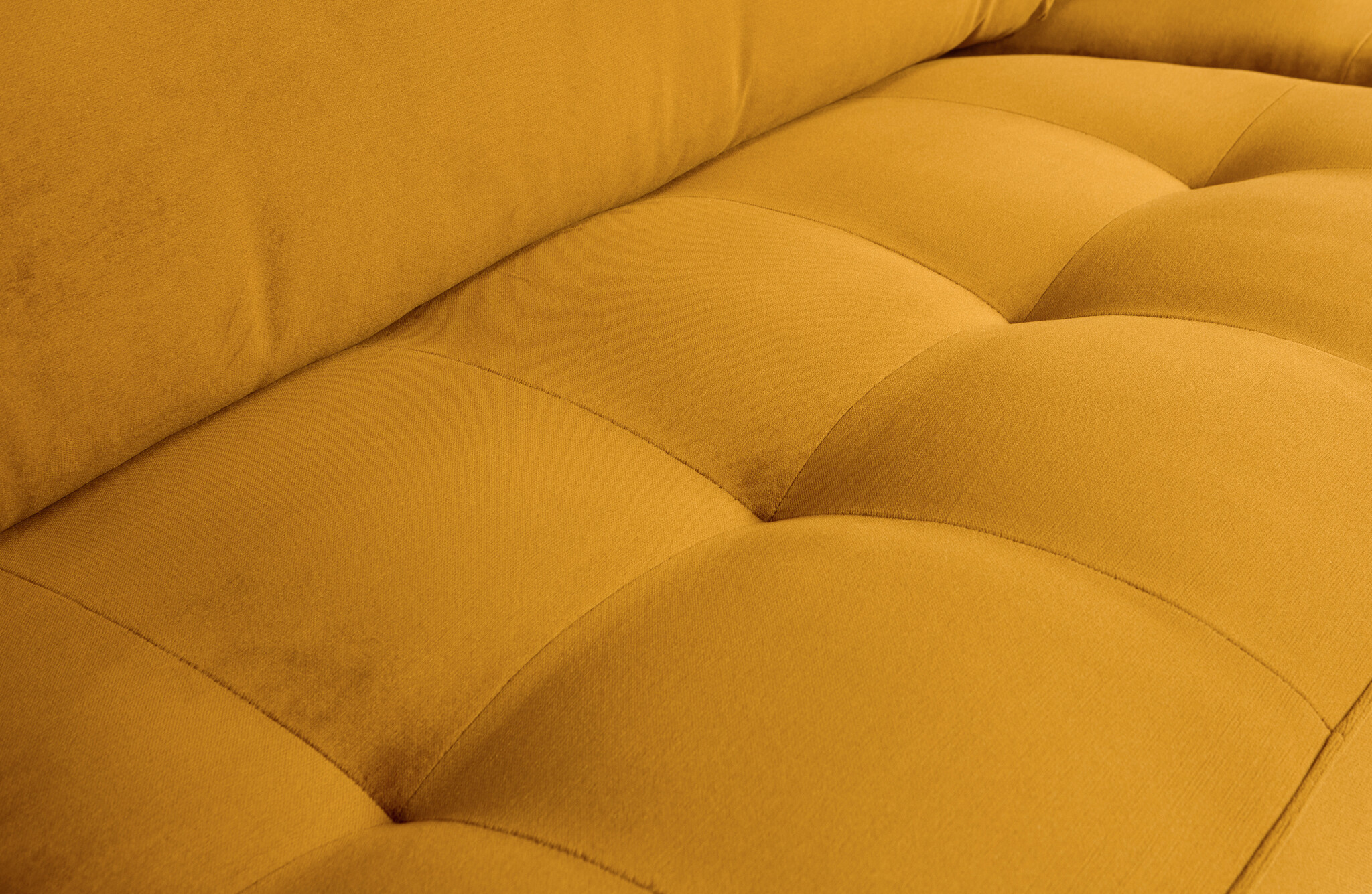 Not available for the UK. This article is not Fire Retardant. - Classic and generous design - Part of the well-known Rodeo Classic series - Covered in a rich velvet (100% polyester) - H 83 cm x W 230 cm x D 88 cm The Rodeo series by Dutch interior label BePureHome is modern, sturdy and contemporary. The Rodeo's are spacious and offer a wonderfully firm seating comfort. The high leg frame makes the furniture look slender and airy. Rodeo is known for its timeless combination of colours and materials, inspired by the 50's and given a modern twist. The classic twist of the Classic Series is characterized by the outward stitched seams and the quilted seat cushions. Dare to go Rodeo! Material The Rodeo Classic sofa is made of a combination of solid wood [fsc], plywood [fsc], chipboard [fsc], polyurethane foam with a density of 30 kg/m3 and a zigzag springs. The backrest consists of a combination of 70% cut foam and 30% silicone. This Rodeo is upholstered in a rich velvet. Our Jarra velvet fabric has a luxurious look and feel. The fabric feels fine and has a nice light sheen. The Jarra velvet consists of 100% polyester and has a full and heavy quality. The material is therefore suitable for intensive use (Martindale 100,000). Besides the stylish design, the velvet fabric remains beautiful for a long time. Our Jarra fabric will not pill easily and is colourfast. The fabric is, to the surprise of many, a very easy fabric to maintain. Dimensions The Rodeo Classic 2,5-seater sofa has a total height of 83 cm, width of 230 cm and depth of 88 cm. The seat height is 47 cm and the seat depth is 58 cm, creating a comfortable and supportive sitting position. The seat width of this 2.5-seater is 206 cm and is divided into two separate seat and back cushions. The armrests have a width of 12 cm and a height of 70 cm, measured from the floor. The metal legs are 16 cm high. The sofa can carry 200 kg when evenly distributed. Maintenance Small stains can easily be removed by dabbing with an absorbent cloth. Larger stains can be removed with a mild detergent and a microfibre cloth. If necessary, use a hair dryer to dry the stain more quickly. Keep enough distance so that the fabric does not burn. Afterwards, the fabric can be brushed with a velvet brush. This brush is very good for weekly maintenance. Impregnation is not recommended. If impregnation is deemed necessary it is at your own risk. Delivery The Rodeo Classic 2,5-seater sofa is delivered in one package. The legs are easy to attach by following the supplied assembly instructions. To protect hard floors, place felt glides on the underside of the legs. Material: 100% Pes
