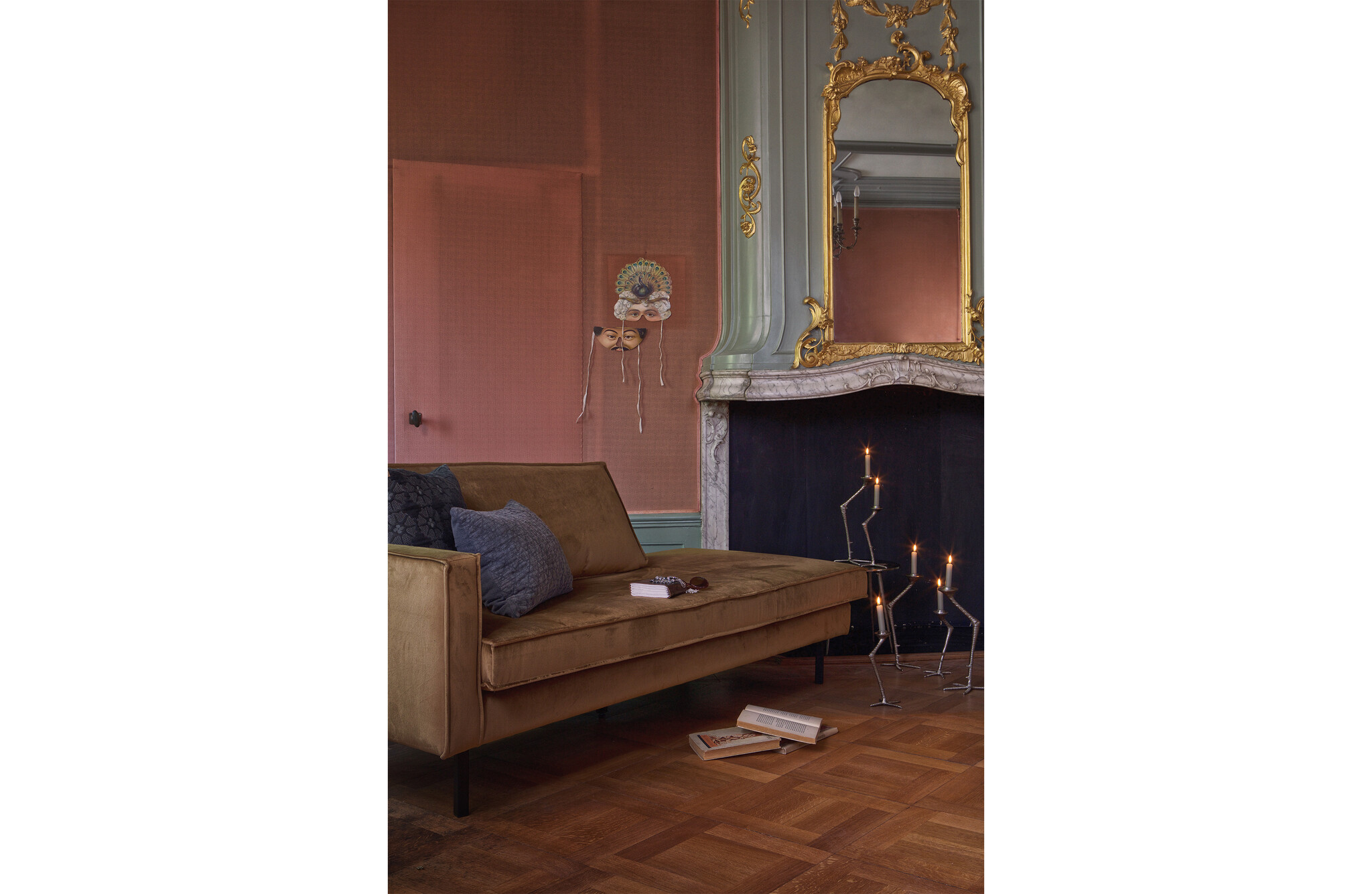 Not available for the UK. This article is not Fire Retardant. - Chic and contemporary design - Part of the famous Rodeo series - Covered in a rich velvet (100% polyester) - H 85 cm x W 203 cm x D 86 cm The Rodeo series by Dutch interior label BePureHome is modern, sturdy and contemporary. The Rodeo's are spacious and offer a wonderfully firm seating comfort. The high leg frame makes the furniture look slender and airy. Rodeo is known for its timeless combination of colours and materials, inspired by the 50's and given a modern twist. Dare to go Rodeo! Material The Rodeo daybed is made of a combination of solid wood [fsc], chipboard [fsc], polyurethane foam with a density of 25 kg/m3 and a zigzag spring. The seat contains a polyurethane foam with a density of 30 kg/m3 (T3037). The backrest consists of a combination of 70% cut foam and 30% silicone. This Rodeo is upholstered in a rich velvet. Our Jarra velvet fabric has a luxurious look and feel. The fabric feels fine and has a nice light sheen. The Jarra velvet consists of 100% polyester and has a full and heavy quality. The material is therefore suitable for intensive use (Martindale 100,000). Besides the stylish design, the velvet fabric remains beautiful for a long time. Our Jarra fabric will not pill easily and is colourfast. The fabric is, to the surprise of many, a very easy fabric to maintain. Dimensions The Rodeo daybed has a total height of 85 cm, width of 203 cm and depth of 86 cm. The seat height is 47 cm and the seat depth is 63 cm, providing fine support. The seat width of the daybed is 194 cm and has a loose seat and back cushion. The armrest has a width of 12 cm and a height of 68 cm, measured from the floor. The metal legs are 20 cm high. The sofa can carry 200 kg when evenly distributed. Maintenance Small stains can easily be removed by dabbing with an absorbent cloth. Larger stains can be removed with a mild detergent and a microfibre cloth. If necessary, use a hair dryer to dry the stain more quickly. Keep enough distance so that the fabric does not burn. Afterwards, the fabric can be brushed with a velvet brush. This brush is very good for weekly maintenance. Impregnation is not recommended. If impregnation is deemed necessary it is at your own risk. Delivery The daybed will be delivered in one package. The legs are easy to attach using the supplied assembly instructions. To protect hard floors, place felt glides on the underside of the legs. Material: 100% Pes