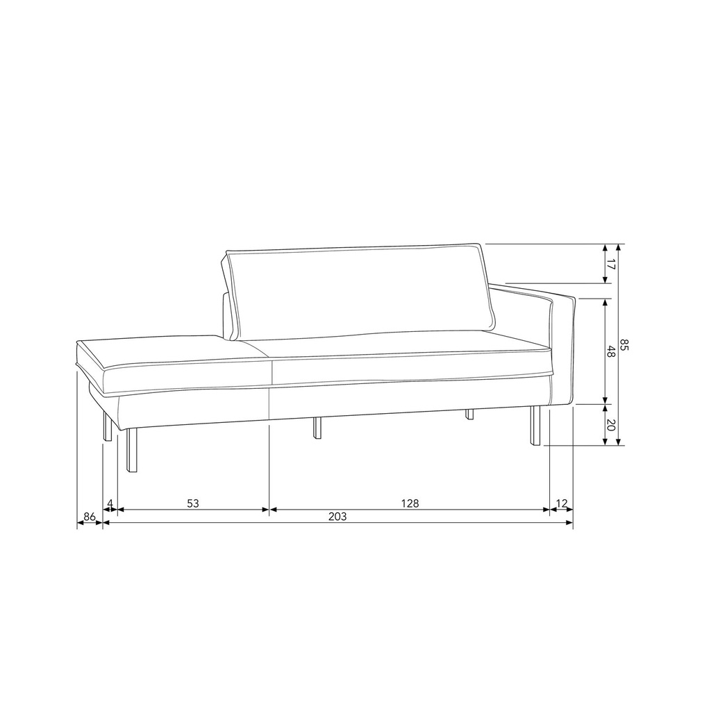 Not available for the UK. This article is not Fire Retardant. - Chic and contemporary design - Part of the famous Rodeo series - Covered in a rich velvet (100% polyester) - H 85 cm x W 203 cm x D 86 cm The Rodeo series by Dutch interior label BePureHome is modern, sturdy and contemporary. The Rodeo's are spacious and offer a wonderfully firm seating comfort. The high leg frame makes the furniture look slender and airy. Rodeo is known for its timeless combination of colours and materials, inspired by the 50's and given a modern twist. Dare to go Rodeo! Material The Rodeo daybed is made of a combination of solid wood [fsc], chipboard [fsc], polyurethane foam with a density of 25 kg/m3 and a zigzag spring. The seat contains a polyurethane foam with a density of 30 kg/m3 (T3037). The backrest consists of a combination of 70% cut foam and 30% silicone. This Rodeo is upholstered in a rich velvet. Our Jarra velvet fabric has a luxurious look and feel. The fabric feels fine and has a nice light sheen. The Jarra velvet consists of 100% polyester and has a full and heavy quality. The material is therefore suitable for intensive use (Martindale 100,000). Besides the stylish design, the velvet fabric remains beautiful for a long time. Our Jarra fabric will not pill easily and is colourfast. The fabric is, to the surprise of many, a very easy fabric to maintain. Dimensions The Rodeo daybed has a total height of 85 cm, width of 203 cm and depth of 86 cm. The seat height is 47 cm and the seat depth is 63 cm, providing fine support. The seat width of the daybed is 194 cm and has a loose seat and back cushion. The armrest has a width of 12 cm and a height of 68 cm, measured from the floor. The metal legs are 20 cm high. The sofa can carry 200 kg when evenly distributed. Maintenance Small stains can easily be removed by dabbing with an absorbent cloth. Larger stains can be removed with a mild detergent and a microfibre cloth. If necessary, use a hair dryer to dry the stain more quickly. Keep enough distance so that the fabric does not burn. Afterwards, the fabric can be brushed with a velvet brush. This brush is very good for weekly maintenance. Impregnation is not recommended. If impregnation is deemed necessary it is at your own risk. Delivery The daybed will be delivered in one package. The legs are easy to attach using the supplied assembly instructions. To protect hard floors, place felt glides on the underside of the legs. Material: 100% Pes