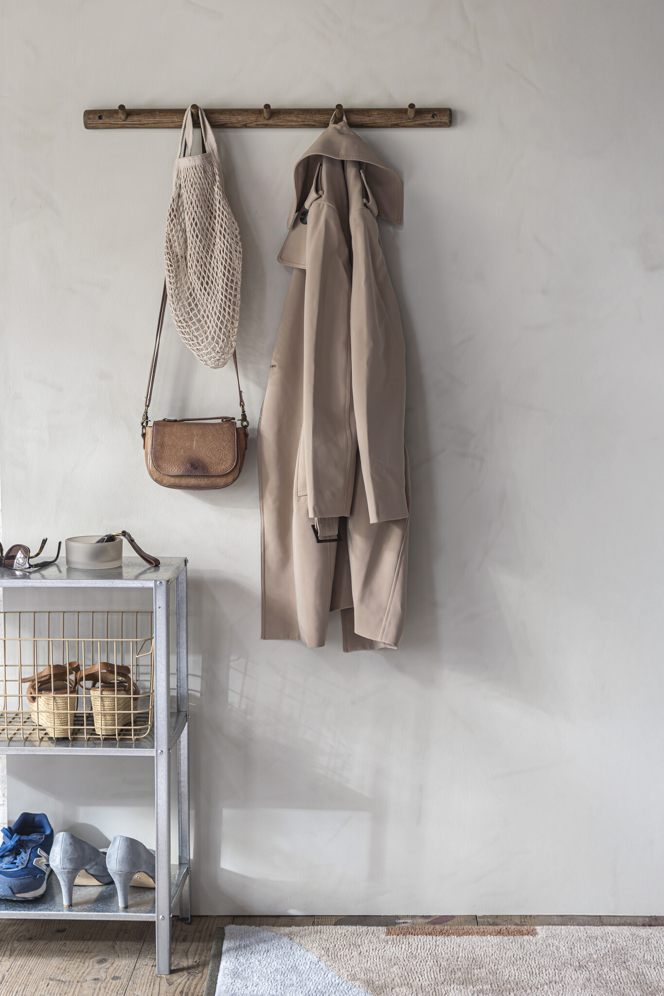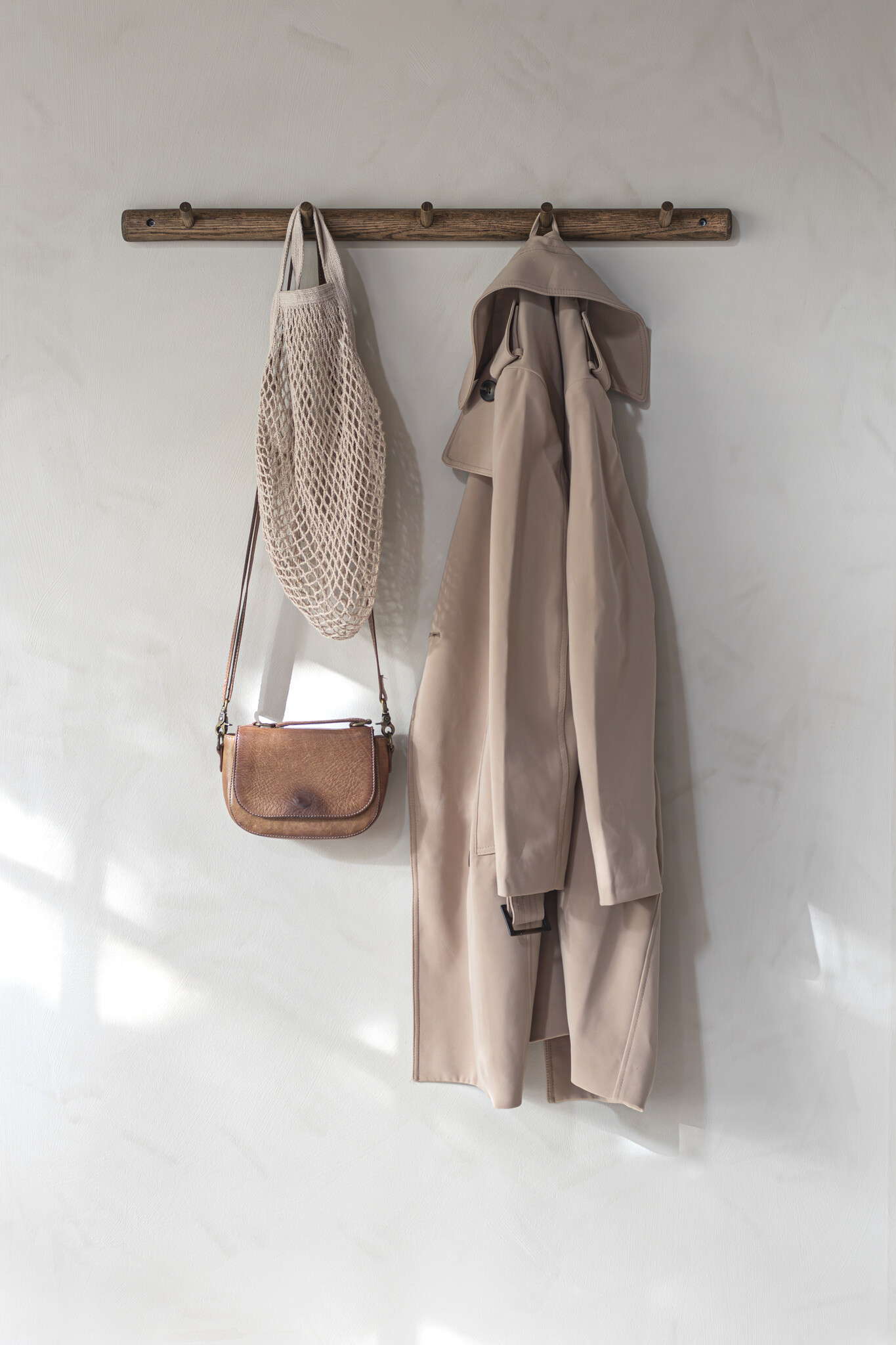 The ROOTS coat rack is a functional and versatile piece made from dark-oiled solid oak, combining simple design with a range of applications. Featuring five sturdy hooks, it’s perfect for jackets and bags in the hallway, tea towels and utensils in the kitchen, or robes in the bathroom. - Washing/Care Instructions: Wipe with damp cloth. - Washing/Care Instructions: Wipe with damp cloth. - Material Composition: Oak