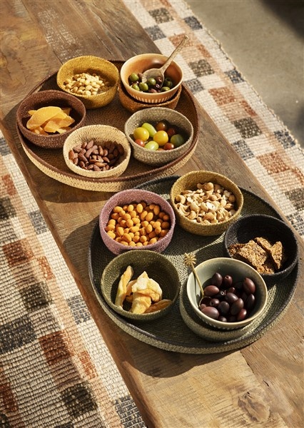 This round seagrass tray in peach, brown brings warmth, texture and a touch of nordic nature to your home. Crafted from dyed seagrass, machine hand-stitched with cotton thread, it offers light yet strong quality. Our round seagrass tray is perfect for functional storage and serving, appealing to eco-conscious customers.