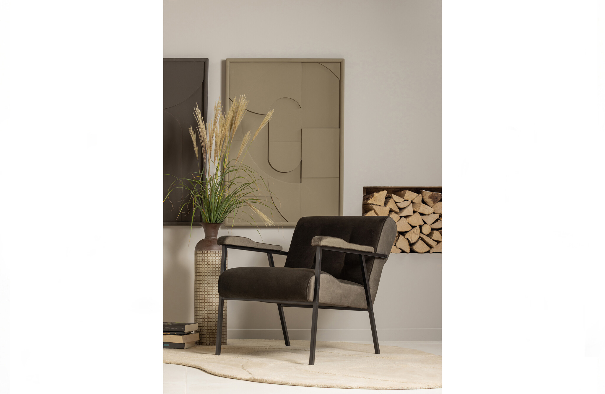- Comfortable armchair with retro look - Sturdy metal frame with super-soft velvet upholstery - Guaranteed high seating comfort - H 75 cm x W 65 cm x D 83 cm This is the statement armchair we've all been waiting for: Scott! The Scott armchair, from the Ex Material: Velvet