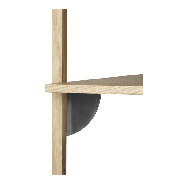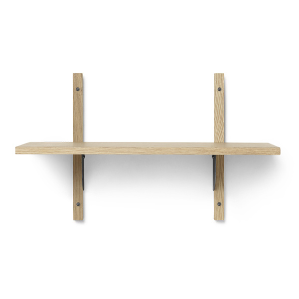 A new and modern take on Mid-century shelving units, Sector is defined by its sturdy simplicity and classic combination of wood and brass – available with natural oak veneer or black stained ash veneer shelves, and polished brass or blackened brass brackets. Available in two sizes, the shelf attaches to a wall with the accompanying solid wood uprights with visible screws. Use it to display favourite objects in a living room or storage jars in a kitchen. Materiaal: Plywood with oak veneer Onderhoud instructies: Wipe with a damp cloth