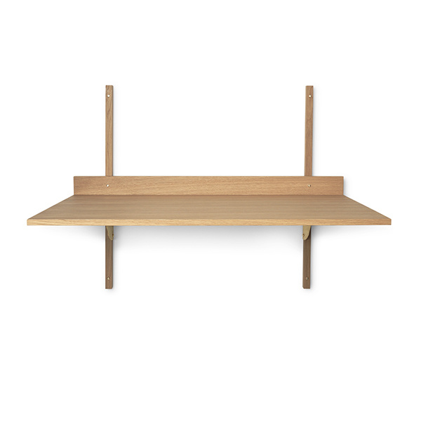 - Material: Desk: Natural oak veneer with plywood core. Profiles: Natural solid oak. Brackets: BrassDesk: Natural oak veneer with plywood core. Profiles: Natural solid oak. Brackets: Brass