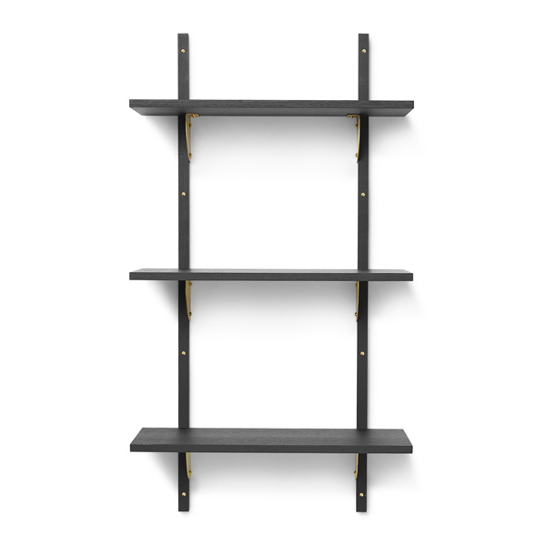 A new and modern take on Mid-century shelving units, Sector is defined by its sturdy simplicity and classic combination of wood and brass – available with natural oak veneer or black stained ash veneer shelves, and polished brass or blackened brass brackets. Available in two sizes, the shelf attaches to a wall with the accompanying solid wood uprights with visible screws. Use it to display favourite objects in a living room or storage jars in a kitchen. Materiaal: Plywood with ash veneer Onderhoud instructies: Wipe with a damp cloth