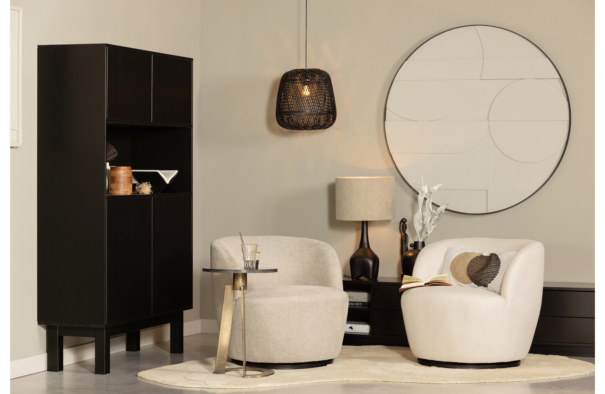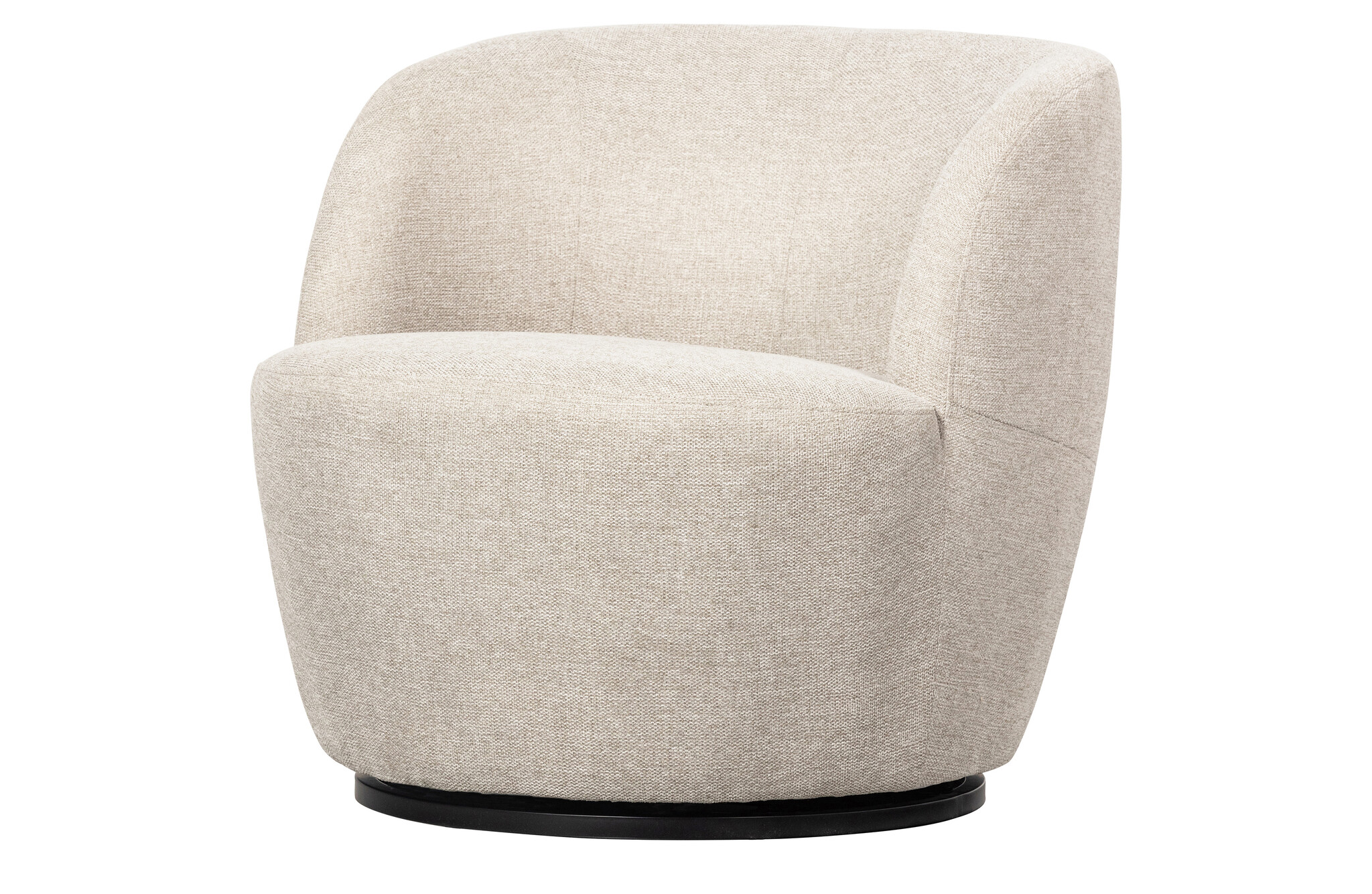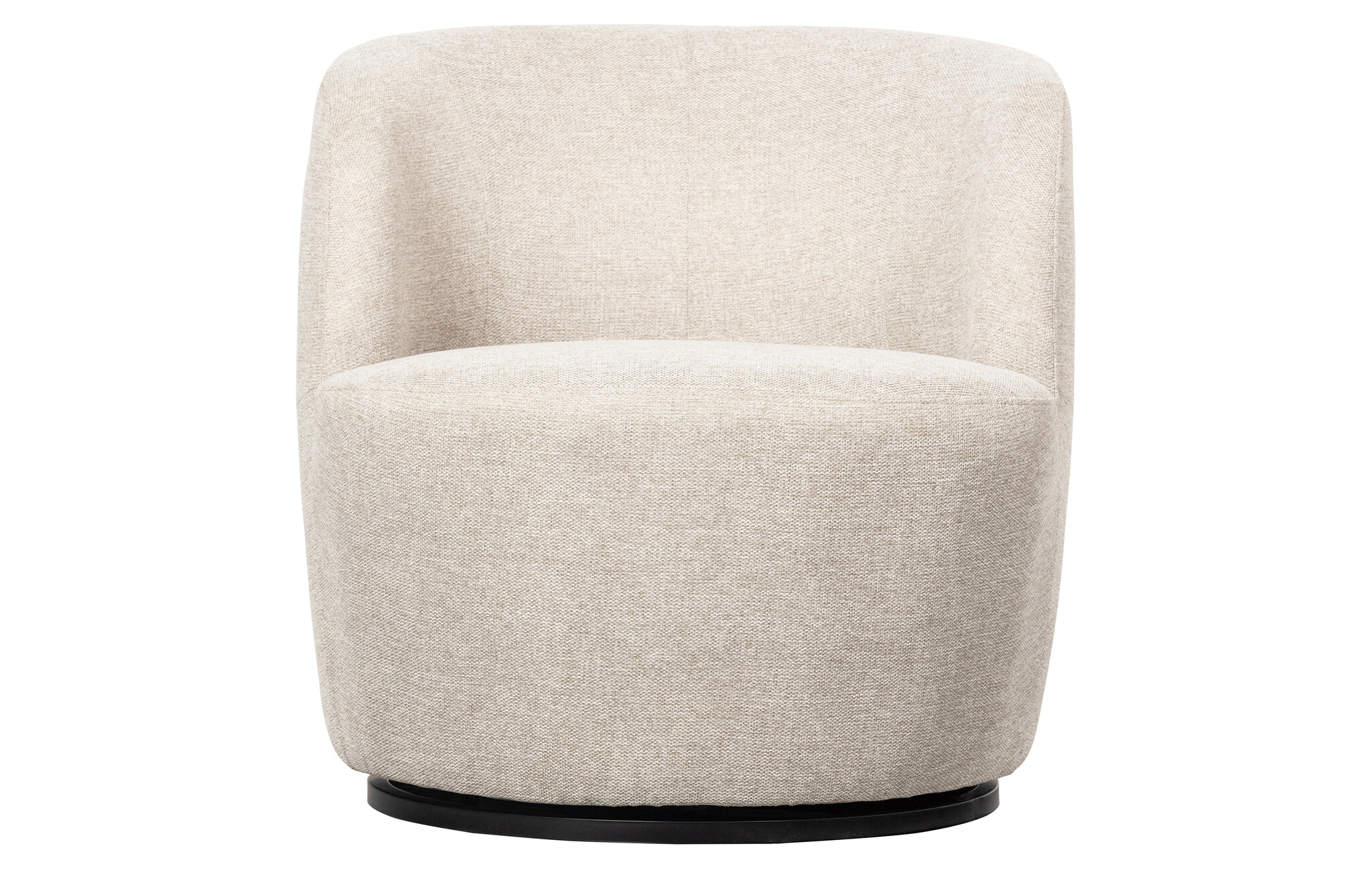 - Round-shaped swivel chair - Upholstered with a woven polyester fabric - Swivel in any direction! - H 75 cm x W 70 cm x D 69 cm The Serra swivel armchair comes from the Exclusive collection by Dutch interior design brand WOOOD. This ideal swivel chair is Material: 100% Pes