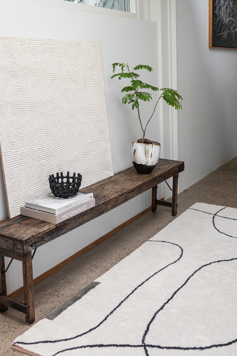 With its minimalist design and generous size, the SHADOW rug is designed to ground the living room – for example, placed beneath a coffee table. The soft, tufted surface feels comfortable underfoot and helps create a calm, welcoming atmosphere. The colour is a pure off-white, framed by a light brown border that adds subtle contrast and highlights the organic line art motif with elegance. A modern rug with timeless qualities. - Material: 100% cotton, OEKO-TEX® 100-certified, rubber back - Washing/Care Instructions: Wash at 30° C gentle. Use detergent without bleach. Tumble dry on low temperature.