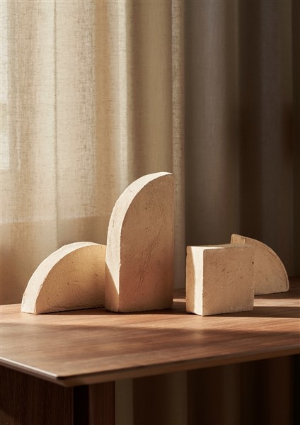 Handcrafted in Italy using the finest clay from the River Po, the Shape Sculpture Set consists of four geometric, sculptural shapes that have been formed by water, fire and human hands. With artfully uneven edges and a characteristic rough surface, each individual piece is unique and will add an element of tactility to your home. Display the artistic pieces throughout your home, alone or as a set, or use them as decorative bookends on your bookshelf. Material: Clay Product note: Shape 1, Half circle: H: 24 X W: 12 X D: 5 CM Shape 2, Square: H: 12 X W: 12 X D: 5 CM Shape 3, Tall: H: 12 X W: 24 X D: 5 CM Shape 4, Quarter circle: H: 12 X W: 12 X D: 5 CM Product care: Wipe with a damp cloth