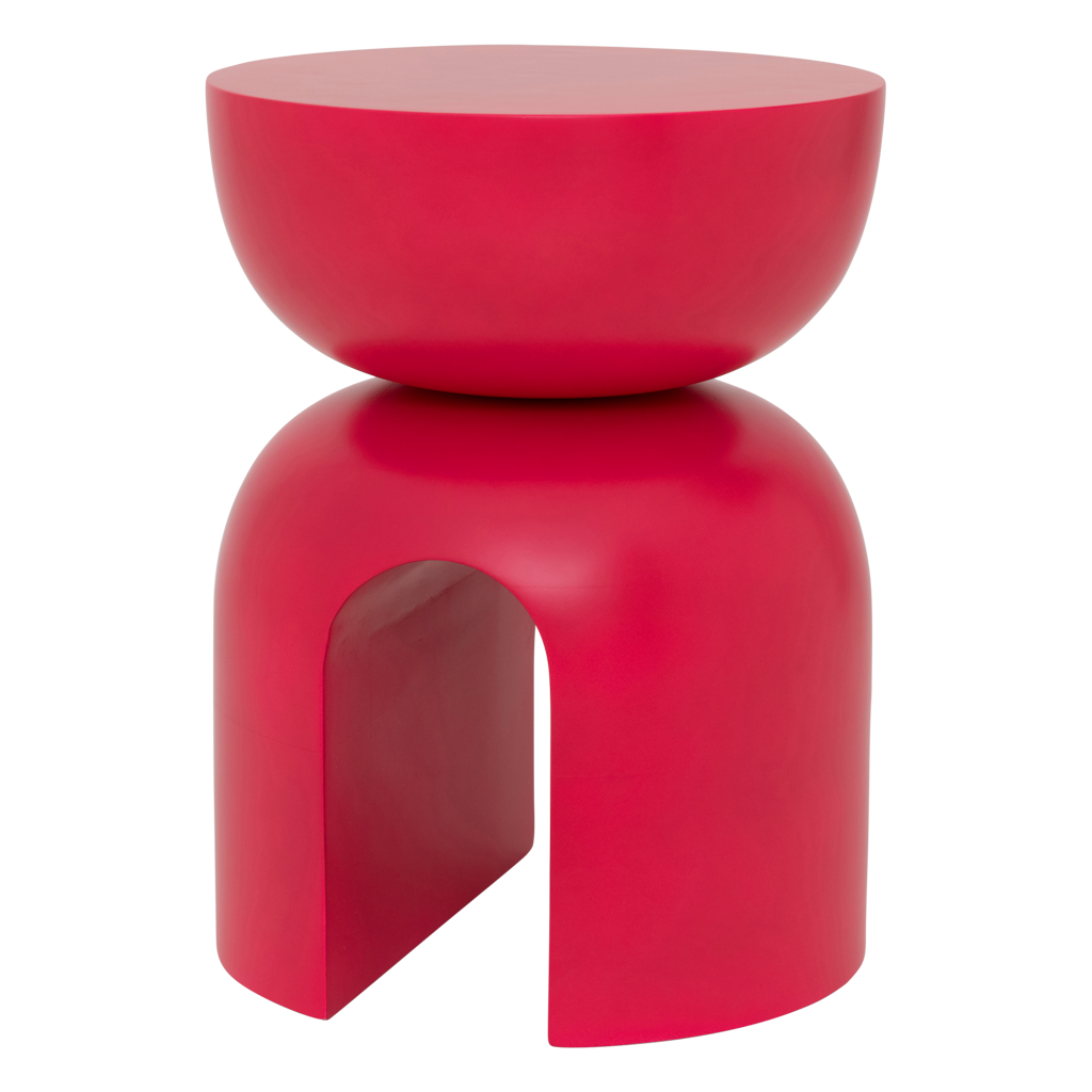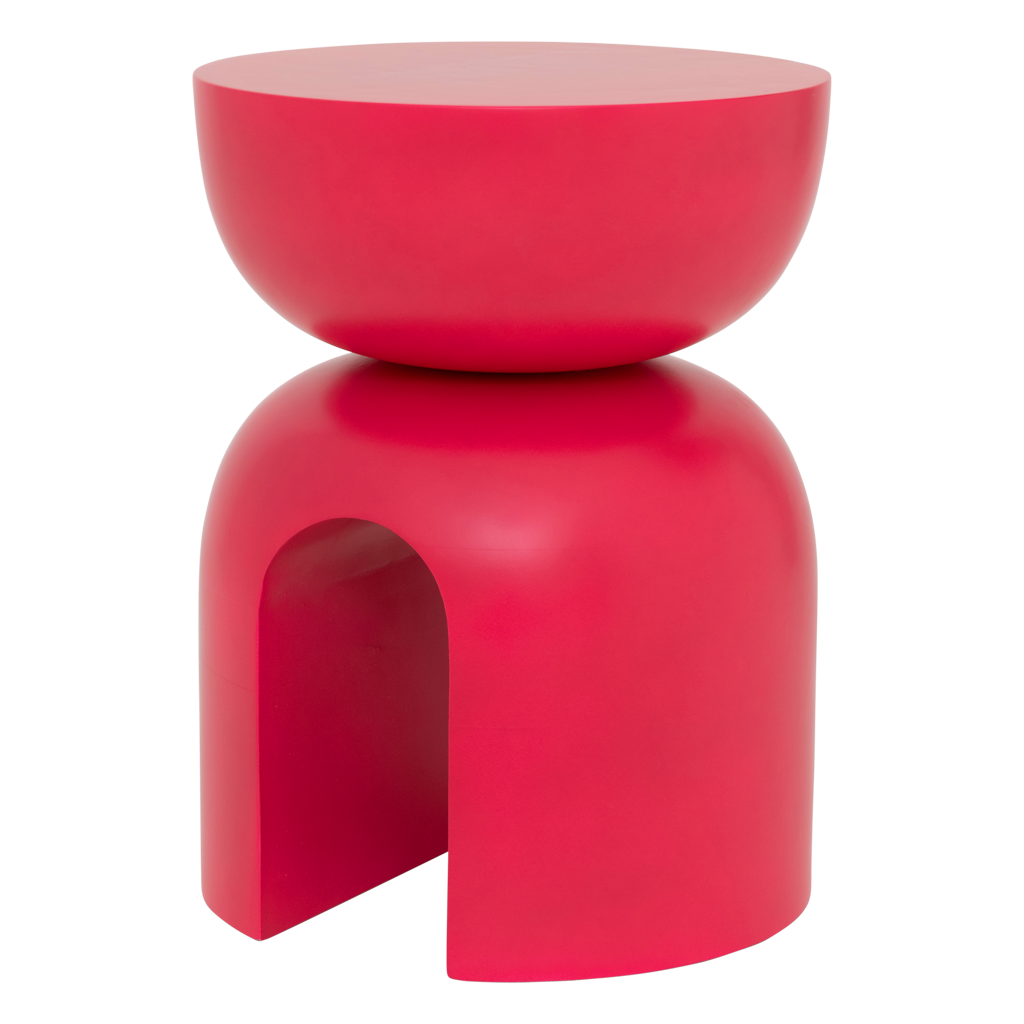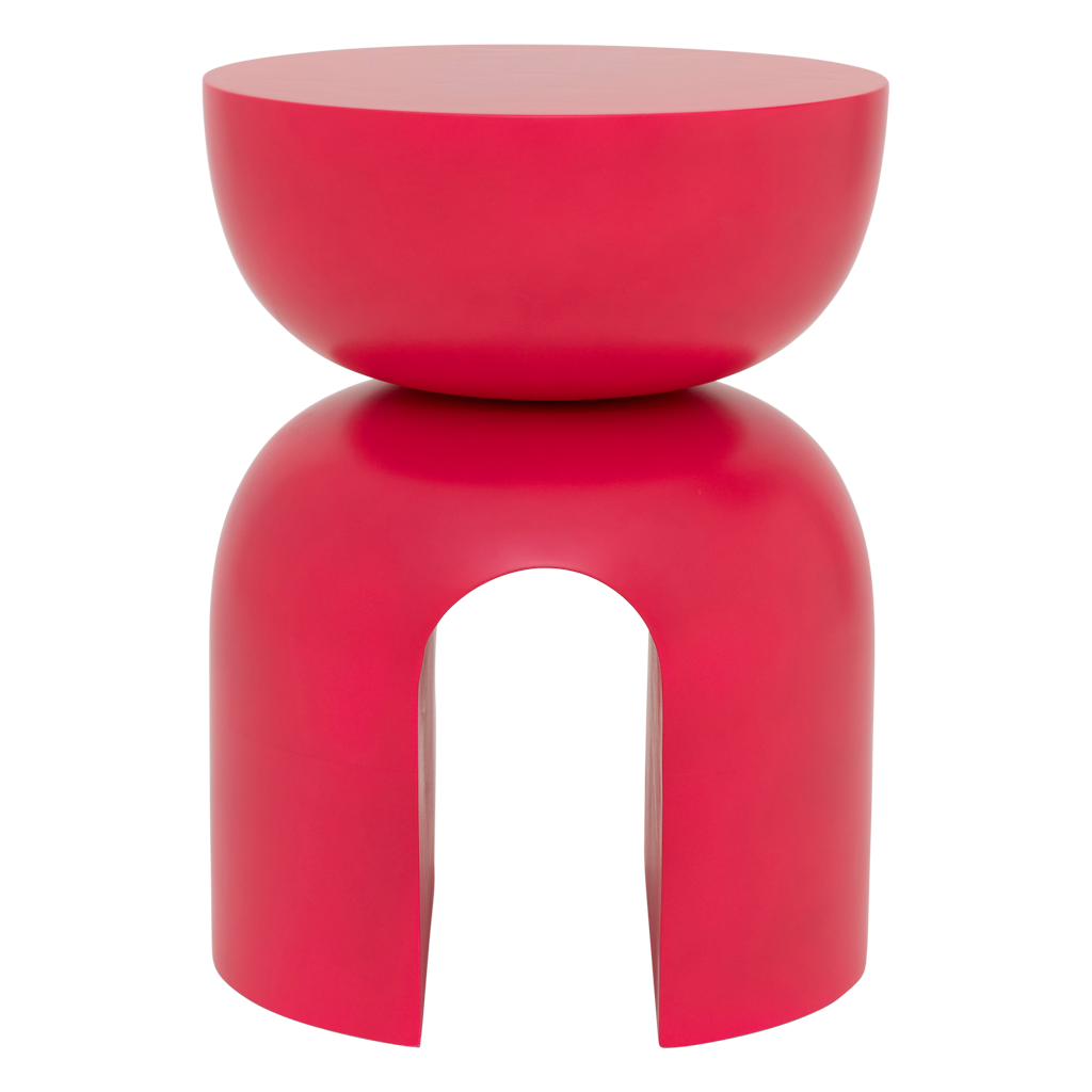 A bold side table in expressive pink, made from eco-friendly mango wood. The sculptural form adds character to any room.