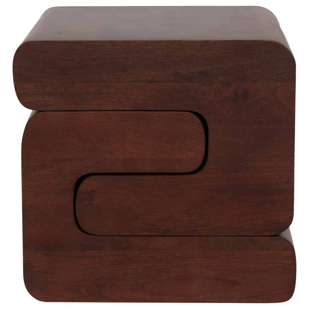 The Lugn side table is bold and grounded – crafted from sustainable mango wood in a deep walnut tone. Its strong silhouette anchors any room with a sense of calm.