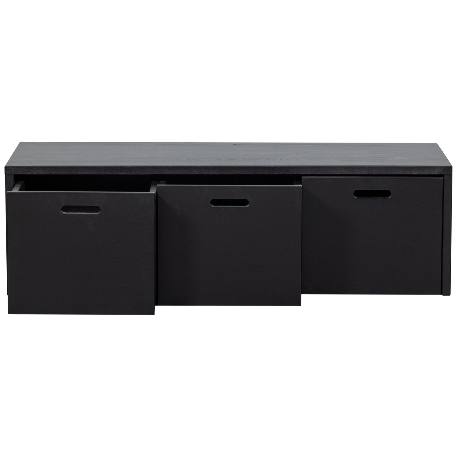 - Praktische, stoere kistbank - Massief, FSC Mix gecertificeerd, grenenhout gelakt in diepzwart - Drie ruime bakken om alles in op te bergen - H 36 x B 120 x D 50 cm De Silke kistbank is praktisch en stoer. De kistbank is gemaakt van massief, FSC Mix gecertificeerd, grenenhout gelakt in diepzwart. Onder de bank bevinden zich 3 grote opbergbakken. Hierdoor is deze kistbank heel praktisch; zitten, spelen en opbergen in een meubel. Materiaal De Silke kistbank is gevormd uit grenenhout afgewerkt in een diepzwarte kleur. Het grenenhouten meubel is FSC-gecertificeerd. Grenenhout wordt gekenmerkt door zichtbare vlam- en nerftekeningen. Afmetingen - Hoogte: 36 cm - Breedte: 120 cm - Diepte: 50 cm - Hoogte per opbergbak: 26 cm - Breedte per opbergbak: 34 cm - Diepte per opbergbak: 44 cm - Draaggewicht: 150 kg - Gewicht: 30 kg Onderhoud Het grenenhout is behandeld met een milieuvriendelijke, watergedragen lak wat de levensduur van het product aanzienlijk verlengt. Behandeld grenenhout is eenvoudig schoon te houden met een lichtvochtige doek. Om kringen en plekken in het hout te vermijden is het aangeraden om vochtige vlekken direct te drogen. Levering Het artikel wordt in een pakket geleverd met een duidelijke montage-instructie. Plaats voor het beschermen van harde vloeren viltglijders aan de onderzijde van de kistbank.