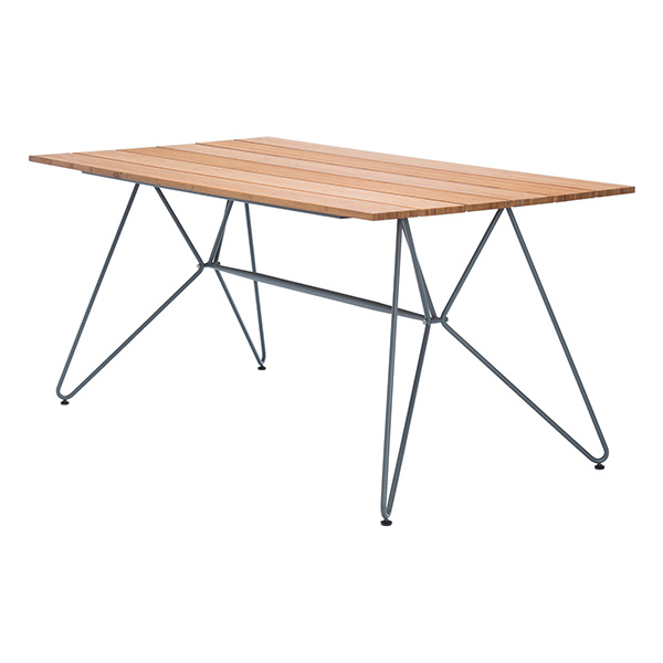 SKETCH outdoor table with lamellas in bamboo. The beautiful sculpted metal legs give the SKETCH table a minimalistic look. The leg construction makes the table completely stable. The bamboo table top is pre-oiled. DIMENSIONS: H:74 x W:88 x L:160 cm MATERIALS: Frame: Powder coated dark gray metal Table top: Bamboo lamellas DESIGNED BY: Henrik Pedersen