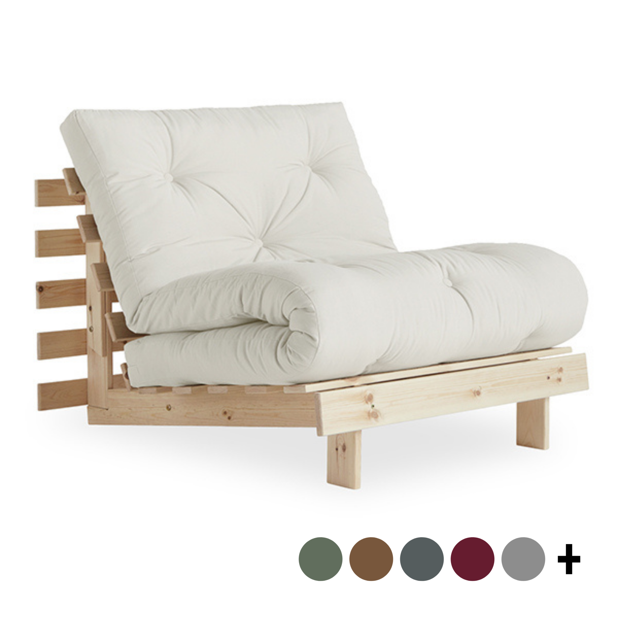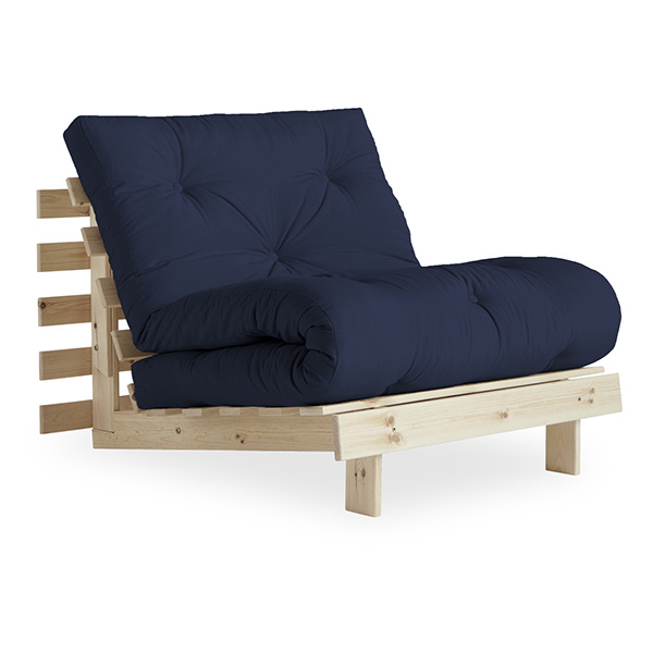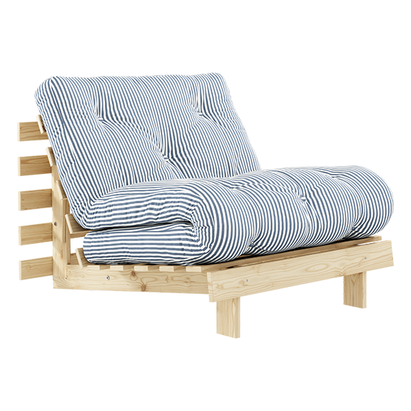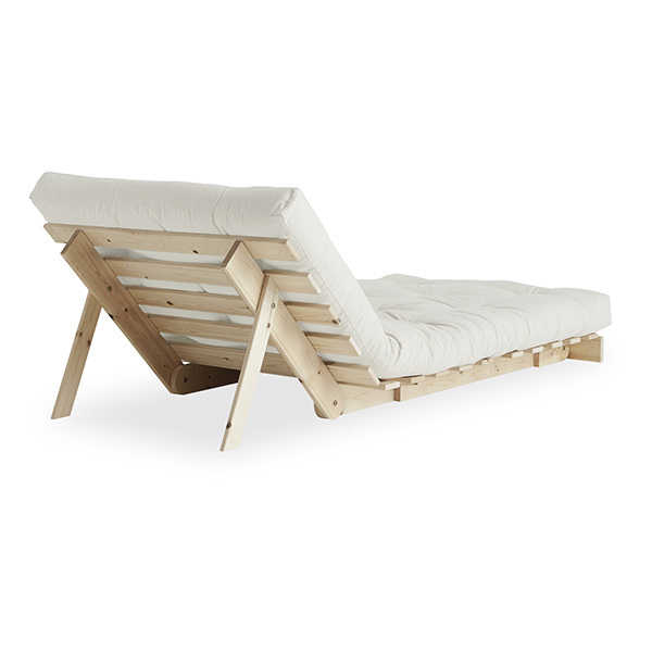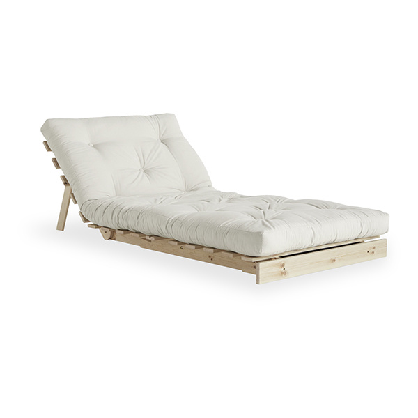 A . Timeless . Piece - Roots 90 is the essence of the Karup Design DNA: You get not only a sofa but also a bed and a comfy lounge chair. By putting down the front legs and adjusting the back, you get a cushy lounge chair. By lowering the back completely you get a nice bed in which you can recharge rooted to the ground. Double up the back, fold over the mattress, and now you have a regular-height lounge chair. Roots 90 transform quickly and easily - just like magic. Get the idea? Material frame: Pine wood, FSC ® C108366 Material cover: 80% cotton + 20% polyester Material filling: 12 cm recycled mixed fibre mattress with a core of 4 cm foam Care instruction: Our mixed fabric is made from 80 % cotton and 20 % polyester. This fabric is available for all products in the Karup Design collection in several colors. Since the bigger part of this fabric is made from natural raw material please make sure to use a sheet when sleeping on your product with mixed fabric. Do only clean with a dry cloth to prevent stains.