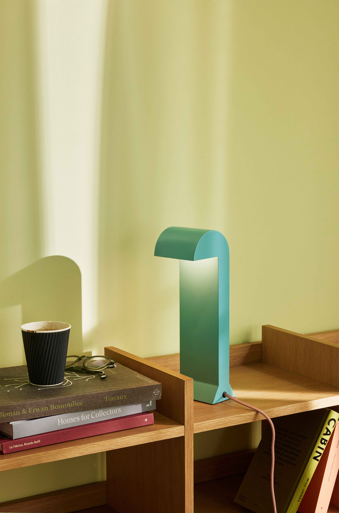 Introducing the Soothe Table Lamp, a whimsical addition to your cosy nook. Crafted from metal and polycarbonate, this graphic table lamp comes in a vibrant turquoise hue, evoking the joyous spirit of childhood games. Its cartoon like shape adds a sculptural element, transforming light into an art form. Perfect for setting the mood, the dimmable function allows you to adjust the brightness to your preference, making every corner a retreat of nostalgic delight.
