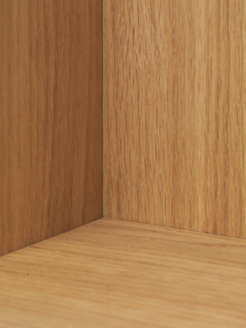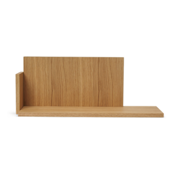 Capturing the essence of minimalist design, the Stagger Shelf is a unique storage solution for your home. The term 'stagger' perfectly encapsulates the arrangement of this shelf, where planks of varying sizes are artfully aligned in a zigzag formation, breaking away from conventional linear structures. The product is FSC™ certified crafted from oak veneer with an MDF core and serves as an ideal addition wherever a touch of extra storage or display space is required. Material: FSC™ Mix certified oak veneer with MDF core. Oiled. Responsibility note: FSC™ Certified. Product note: This shelf adheres to strength and durability standards. It can support up to 1.5 kg / 3.3 lbs assuming it has been professionally mounted. This includes ensuring that the wall type and fixtures (screws and raw plugs) are appropriately matched. Registered design. Care instructions: Wipe with a damp cloth. Do not leave the surface wet. Treat with oil when needed