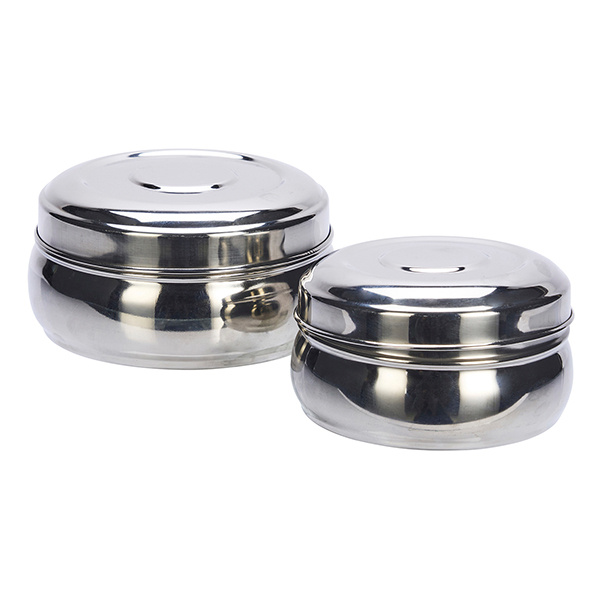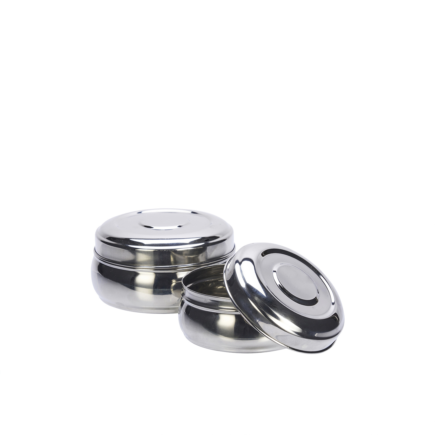 This set of two stainless steel boxes, crafted in India, forms part of a cohesive tableware series. Designed with practicality in mind, these boxes offer a clean and modern aesthetic. Made from robust stainless steel, they are ideal for everyday serving, combining utility with a contemporary expression.