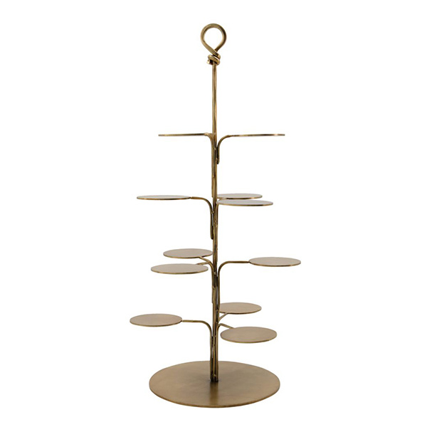 Verfraai uw tafelsetting met deze elegante standaard, ideaal voor het serveren van petit fours, cupcakes en andere heerlijke hapjes. Gemaakt van geborsteld roestvrij staal met een antieke messing afwerking, voegt het een verfijnde touch toe aan elke gelegenheid.