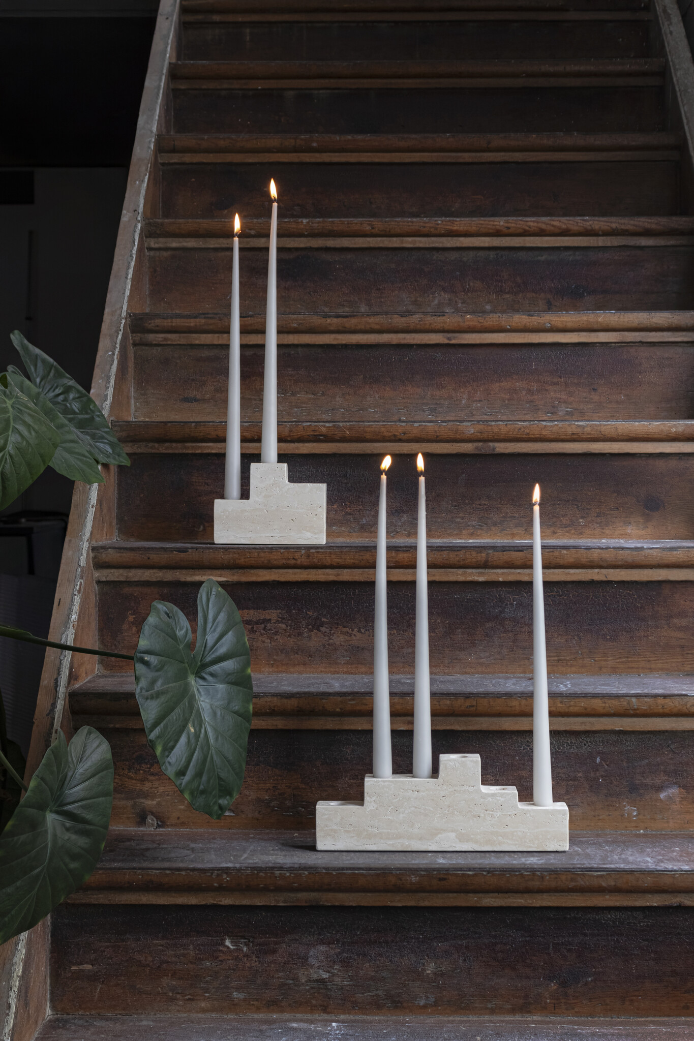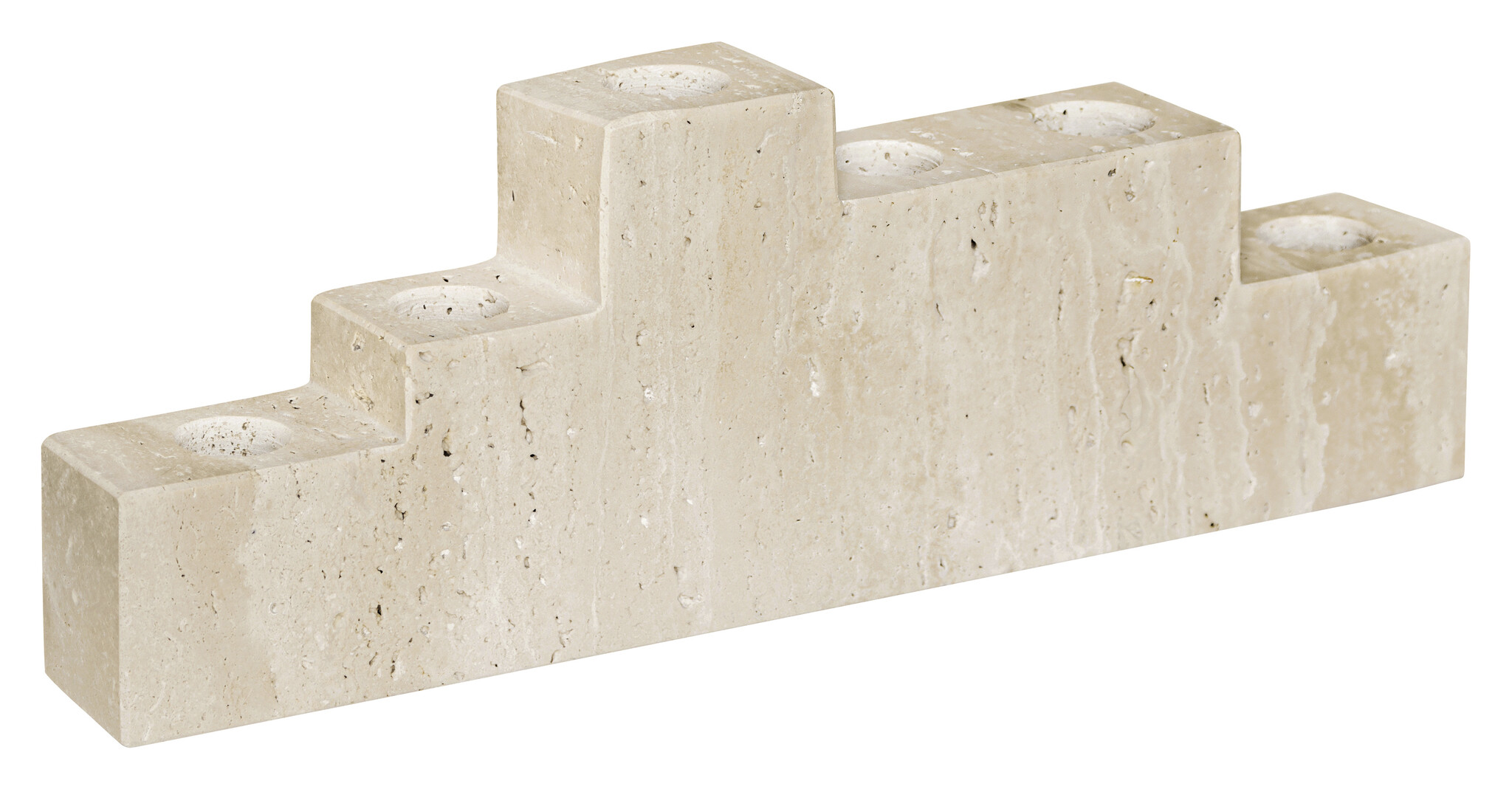 The STEP candleholder from Mette Ditmer is designed to hold six candles and brings warmth and personality into your home. Crafted from travertine, it features natural indentations and unique details, making each piece one of a kind.