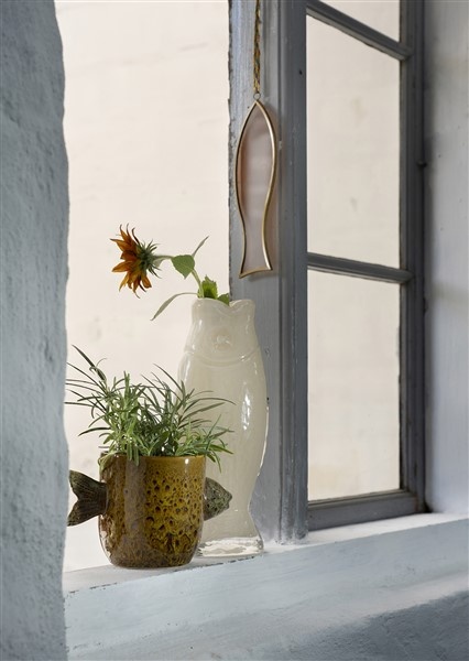 Madam Stoltz Stoneware flower pot w/ fish Golden brown, green