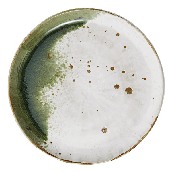 Madam Stoltz Stoneware lunch plate, White, green, natural