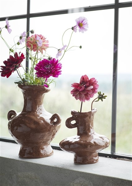 Madam Stoltz Stoneware vase brown 17x18 cm