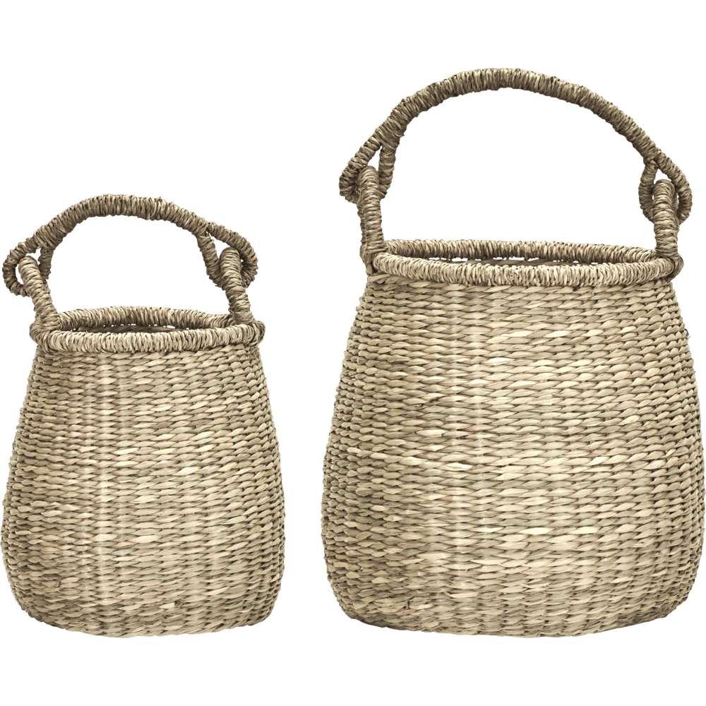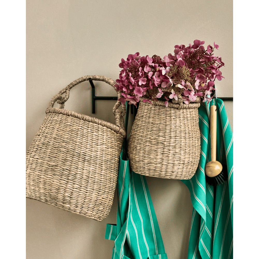 Add a touch of charm to your home with these beautifully crafted natural baskets. Made from seagrass and handwoven, they bring an organic feel that blends seamlessly with any décor. Whether you're organising kitchen textiles or storing craft supplies, these baskets are both practical and stylish. The set includes two sizes, each featuring handles for easy portability, making them perfect for use in the kitchen, utility room, or living area. - Handmade seagrass design- Set of two versatile sizes- Integrated practical handles- Adds charm to your interiorIncorporate these baskets into your home for a stylish storage solution.