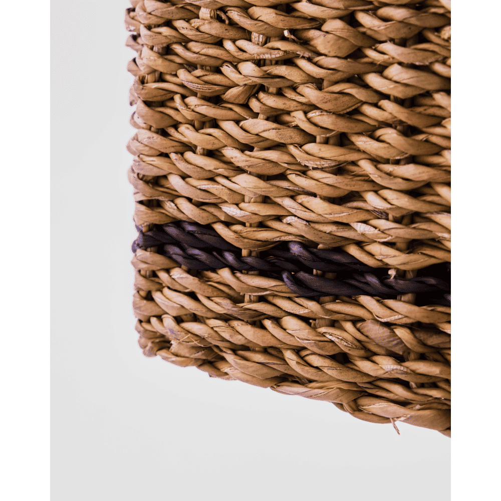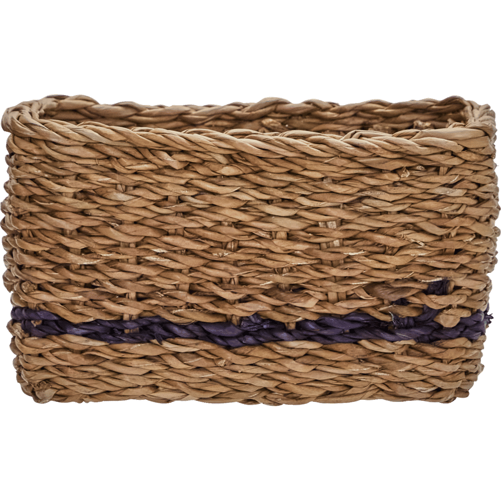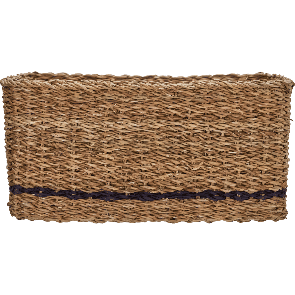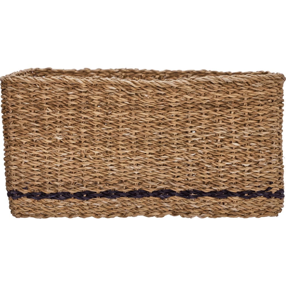 Organise everyday essentials while adding warmth to your home with these handmade storage baskets. The natural seagrass complemented by a single black stripe makes each basket a subtle statement, and the square, practical shape brings easy order to any setting. Use them in your hallway for keys and gloves, in the living room for magazines, or in the bathroom for towels - let your creativity lead the way.- Handmade from natural seagrass.- Subtle black stripe detail.- Set of 6 baskets.- Square, practical design.Tidy up your space and style with baskets that fit anywhere you need extra storage or decorative flair. Material:Primary: Seagrass (100%) Inhoud: Foodsafe: Martindale: Montage vereist: Nee Onderhoud / reiniging: Clean with a dry cloth