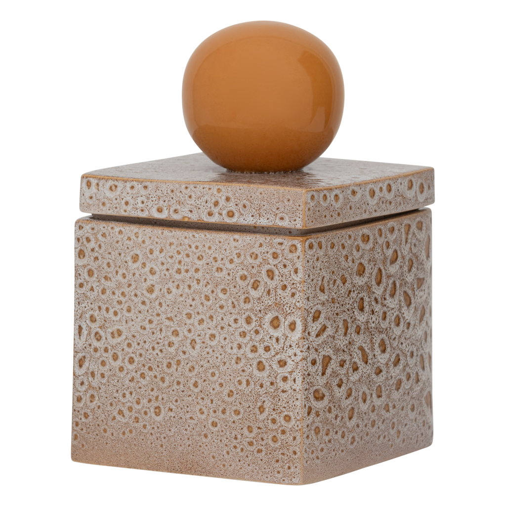 A bold and tactile recycled ceramic jar with a chunky orange handle and reactive glaze finish. Perfect for storing everyday essentials in the kitchen, bathroom or living room. Sustainability meets style in this versatile home accessory.
