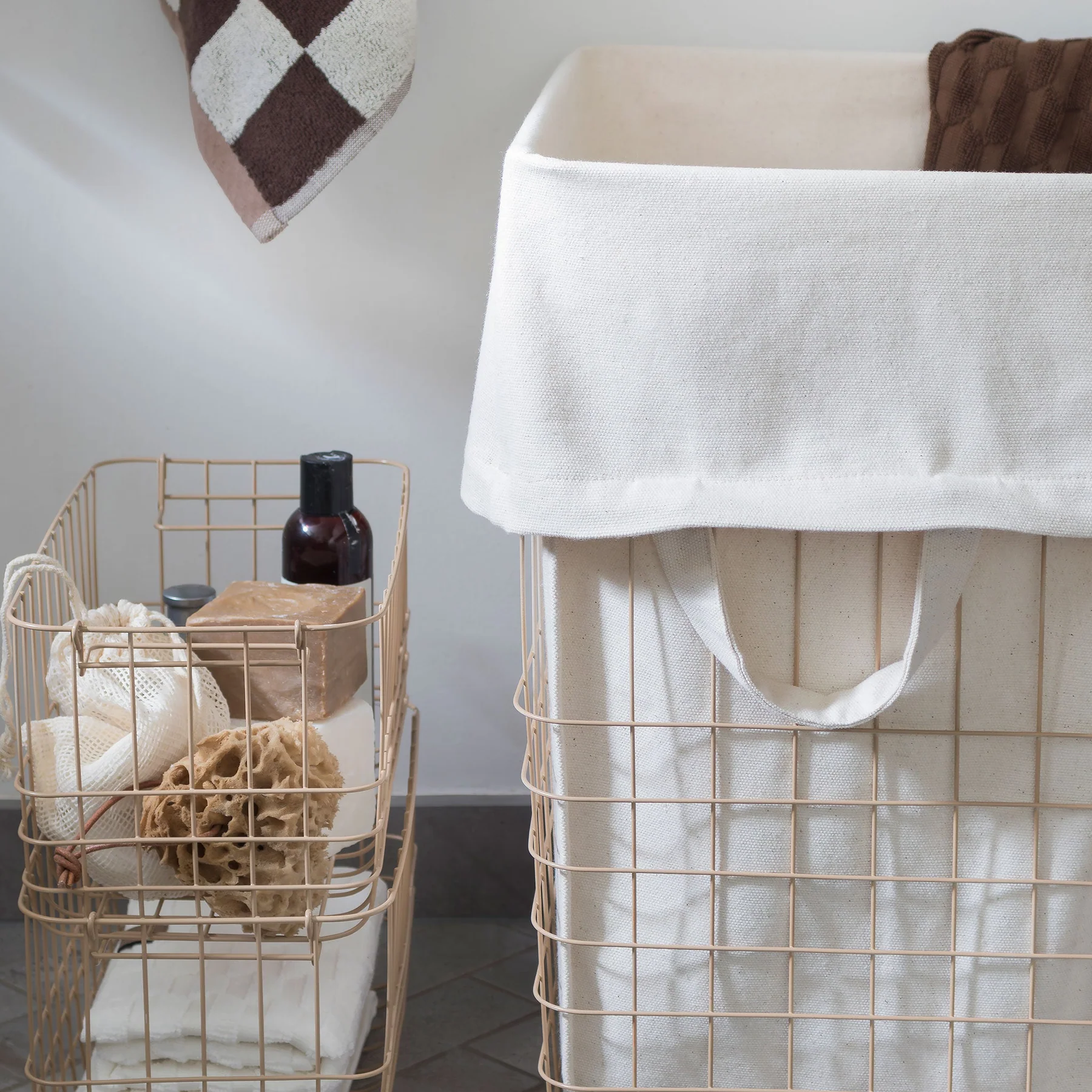 The large STORE-IT wire basket from Mette Ditmer is perfect for organising storage in style. The light wire design and subtle sand colour give the basket a lightness and elegance, adding a stylish element to the interior. The included cotton bag is essential if the basket is used as a laundry basket, and with two handles it can easily be taken out of the basket and taken on the go or taken to the washing machine. The bag can of course be washed as needed. The basket can also be used to store toys in the children's room or blankets and cushions in the living room. Material: Metal wire, cotton Material: Metal wire, cotton - Washing/Care Instructions: Wipe with damp cloth.