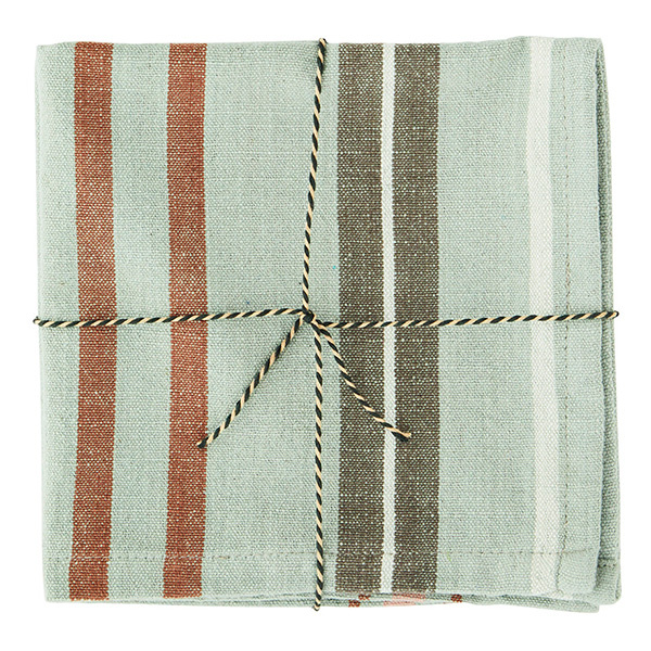 Striped cotton napkins Sage, rose, rust, white, grrey