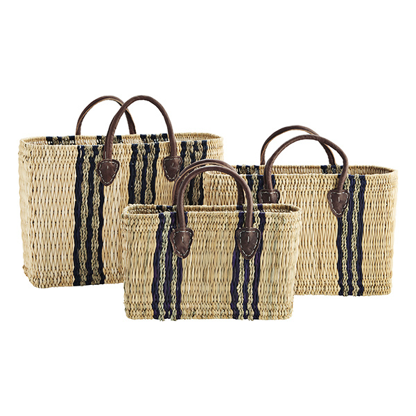 Madam Stoltz Striped grass bags w/ handles Set of 3. Natural materials and handmade items may vary