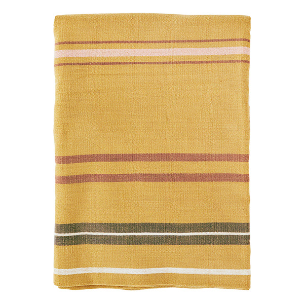 Madam Stoltz Striped table cloth Mustard, rose, rust, white green
