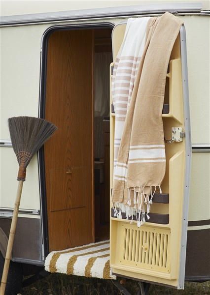 Madam Stoltz Madam Stoltz Striped tufted bath mat Mustard, off white Mustard, off white