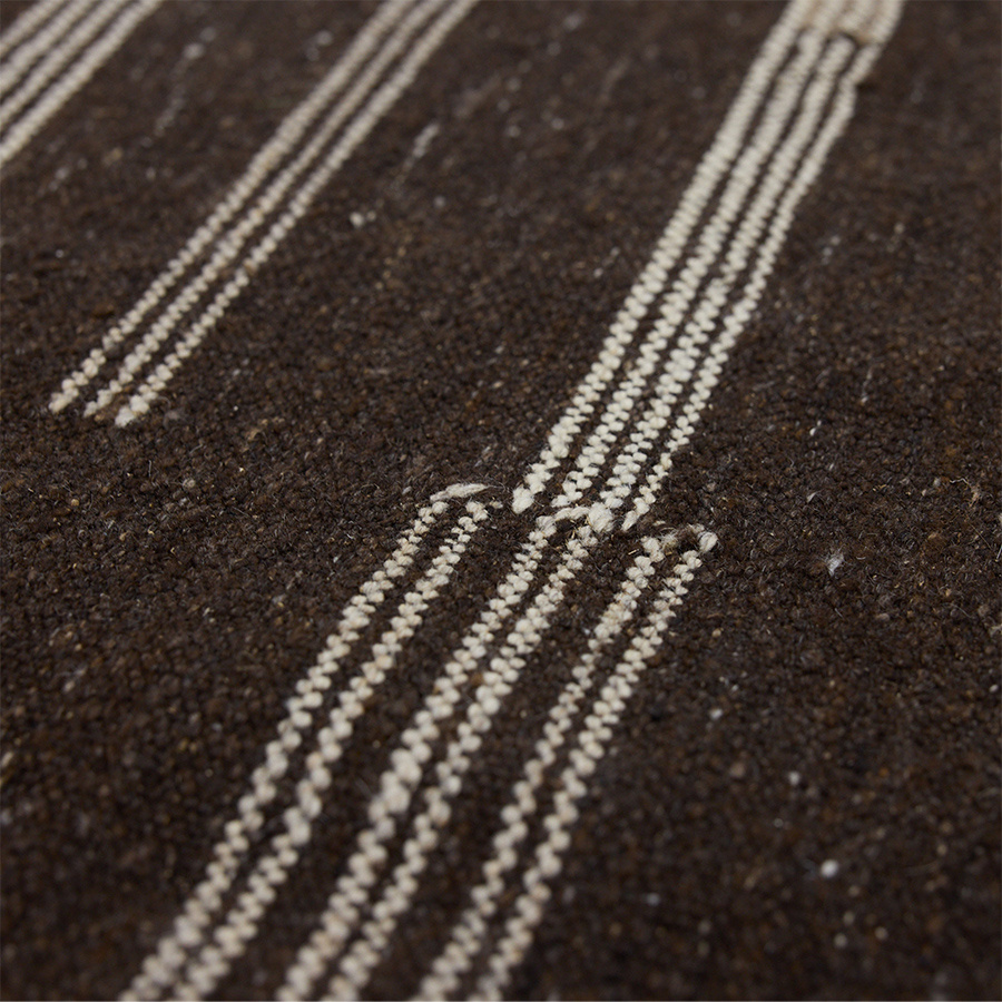Bring warmth and texture to your interior with this deep brown Kelim rug, accented by subtle light stripes for a minimalist twist. Its versatile size makes it equally suited for larger living spaces or smaller cosy areas. Handwoven with precision, this rug offers a rich, earthy foundation that enhances any room with understated elegance. Material: Wool Material: Wool Remark: Regulations: Characteristic: Foodsafe: X Dishwasher proof: X Microwave proof: X Water resistant: No Seating height (cm): x Seating depth (cm): x Seating width (cm): x Height armrests (cm): x Backrest height (cm): x Backrest height (cm): x