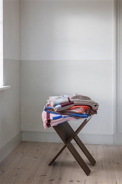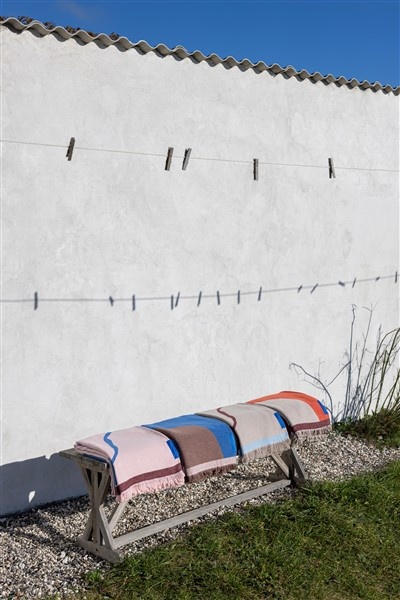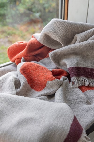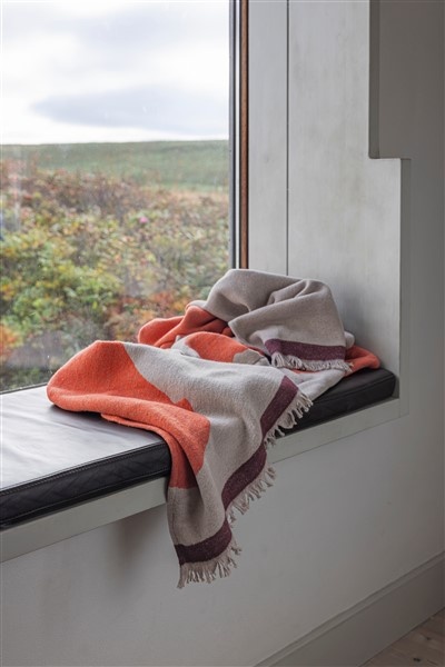 The STUDIO throw in orange brings an artistic vibrancy to your interior. The expressive shapes in bright orange stand out beautifully against the warm sand background, framed by a deep wine border that completes the composition. Woven in a soft recycled cotton blend, the throw adds warmth and texture to your living space – perfect for the sofa, lounge chair or bed. Its bold yet balanced colour combination creates a sense of movement and energy, making it both decorative and functional. Material: 70% recycled cotton, 30% polyester Washing/Care Instructions: Wash at 30° C gentle wash with low spin, avoid fabric softner. The product is not suitable for tumble dryer.