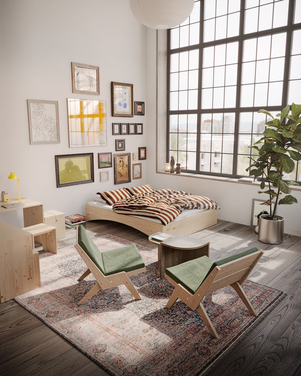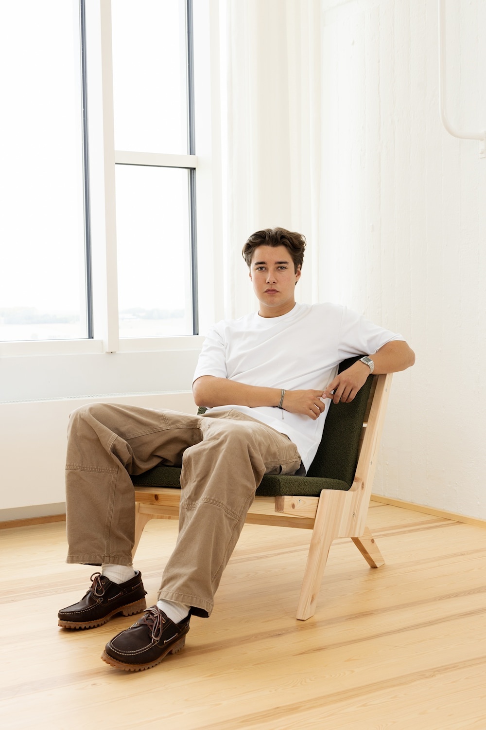 Sway, designed by Herman Studio, is a flexible lounge chair with a clean, Danish design language &ndash, where simplicity and strong, harmonious proportions come together in a single expression. The frame is made of solid pine with characteristic sloping legs that give the chair both lightness and stability.