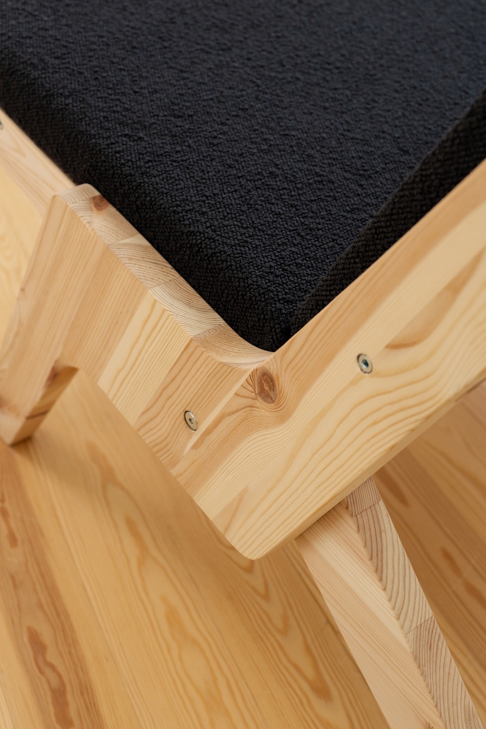 The continuous upholstery is elegantly drawn through the backrest and secured with a round stick, which highlights the craftsmanship and attention to detail and emphasizes the chair's honest construction. The soft bouclé, upholstery adds character and warmth to the mattress and can be easily removed and washed, so the chair always looks inviting.