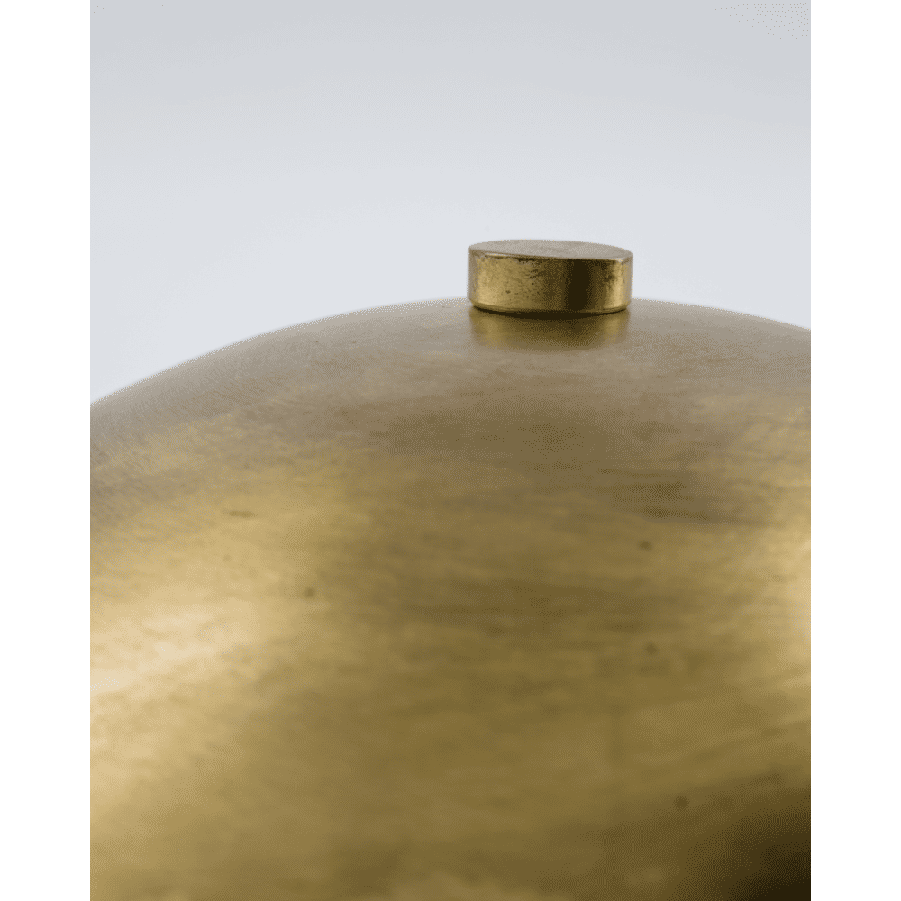 Add a touch of sophistication to your home with this table lamp featuring an antique brass finish. The handcrafted design with a soft silhouette infuses personality into your interior décor, making it an essential piece for any setting. Its white inner lampshade reflects light beautifully, creating indirect lighting that adds warmth and style to your living room or bedroom. This lamp perfectly balances form and function, offering both elegance and practical illumination.- Antique brass finish- Handcrafted, unique design- White lampshade for reflection- Soft, ambient lightingBring refined elegance into your home with this stunning lamp.