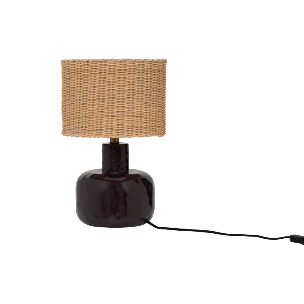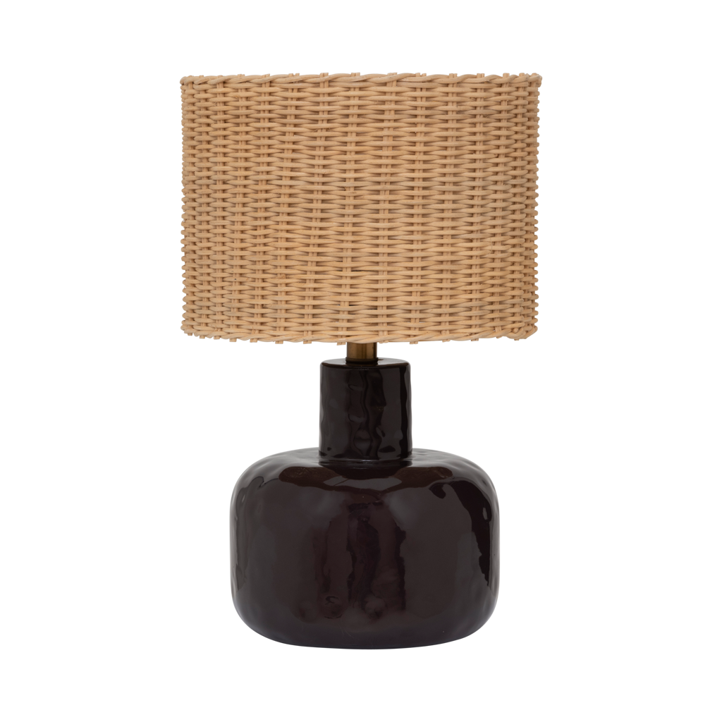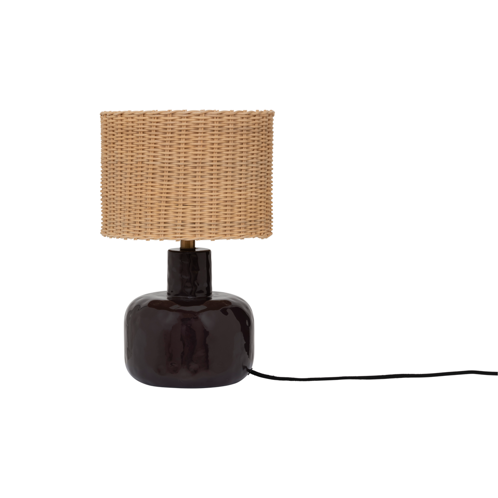 The perfect blend of craft and contrast, this lamp combines a handwoven wicker shade with a glossy aubergine recycled ceramic base. A moody, modern piece that lights up with character.