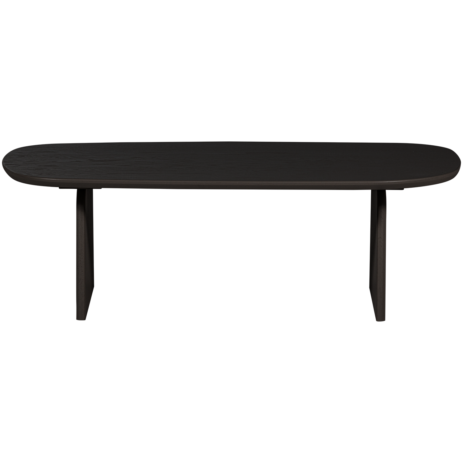 - Stijlvolle salontafel met organische vormen - Uitgevoerd in eikenhout in de kleur blacknight - Robuust en speelse poten - H 35 cm x B 110 cm x D 60 cm Stoer, organisch en stijlvol. Deze woorden omschrijven de Tablo salontafel uit de Tablo serie van het Nederlandse interieurmerk WOOOD. De salontafel is vervaardigd uit eikenhout in de kleur blacknight. De zwarte salontafel combineert een organische vorm met robuuste poten, waardoor hij perfect past in zowel moderne als minimalistische interieurs. De natuurlijke nerftekeningen in combinatie met de zwarte kleur zorgt voor een unieke en luxe uitstraling. Een echte blikvanger die rust en karakter toevoegt aan je zithoek. Materiaal Eikenhout wordt gekenmerkt door de lichtbruine tint met een zachtgele gloed en duidelijk zichtbare nerftekening. Eikenhout droogt over het algemeen zeer langzaam, wat kan zorgen voor het natuurlijke proces van scheuring en verkleuring. Het eikenhout in onze collecties is FSC Mix gecertificeerd. Onder invloed van licht en warmte kan een houten meubel van uiterlijk veranderen. De mate waarin dit gebeurt is afhankelijk van de ruimte waarin het meubel wordt geplaatst. Afwijkingen van het meubel ten opzichte van het model in de showroom zijn dus vanzelfsprekend, elk meubel is uniek. Afmetingen - Hoogte: 35 cm - Breedte: 110 cm - Diepte: 60 cm - Poothoogte: 38 cm (dit is incl. montageplaat) - Draaggewicht: 50 kg - Gewicht: 11,9 kg Onderhoud Behandeld eikenhout is zeer eenvoudig in het onderhoud. Houd het meubel regelmatig stofvrij met een schone, droge doek. Verwijder vochtige vlekken direct met een licht vochtige doek en neutraal schoonmaakmiddel, laat het hout aan de lucht drogen. Hanteer altijd de basisbescherming voor hout, zoals het gebruik van een onderzetter onder een drinkglas of hete pan. Levering Dit meubel wordt geleverd in een pakket en is eenvoudig te monteren aan de hand van de bijgeleverde montage-instructie. Plaats voor het beschermen van harde vloeren viltglijders aan de onderzijde.