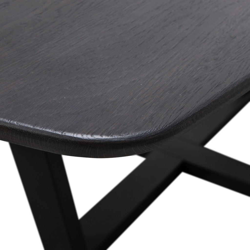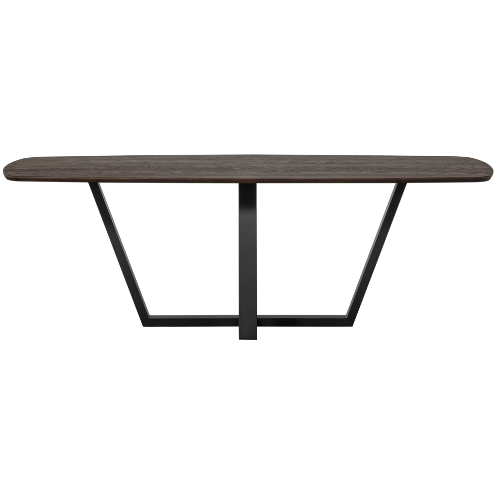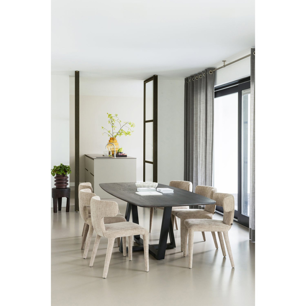 -Moderne tafelpoot met eikenhouten tafelblad (FSC mix gecertificeerd) -Creeer jouw ideale eethoek -Deens ovaal tafelblad voorzien van unieke kantafwerking -H 75 cm X B 219 cm x D 99 cm Creeer jouw ideale eethoek met de veelzijdige Tablo serie van het Nederlandse interieurmerk WOOOD. Met talloze combinatiemogelijkheden en verschillende afmetingen stel je moeiteloos de eethoek samen die perfect aansluit bij jouw wensen. Kies bijvoorbeeld voor dit ruime, Deens ovale tafelblad in combinatie met de moderne Drenthe poot. Het tafelblad heeft een subtiele, afgeronde kantafwerking, wat zorgt voor een verfijnde en elegante uitstraling. Kenmerken Het tafelblad is gemaakt van stroken verlijmd eikenhout met een doorgaande lamelverbinding wat een mooi rustig motief creeert. Eikenhout wordt gekenmerkt door de duidelijk zichtbare nerftekening. De natuurlijke imperfecties van het eikenhout maken elke tafel uniek. Het tafelblad is licht geborsteld waardoor de nerftekeningen worden geaccentueerd en de bruine beitskleur nog mooier tot uiting komt. Het eikenhout in onze collecties is FSC mix gecertificeerd. De Drenthe tafelpoot is gemaakt van metaal en afgewerkt met een zwarte poedercoating. Het metaal uit onze collecties kent diverse afwerkingen, zoals: een poedercoating en messing/antique brass. Een poedercoating zorgt voor een luxueuze matte uitstraling en beschermt het metaal levenslang. Een poedercoating is een lak welke met behulp van hoge temperaturen aan het metaal gehecht wordt. Afmetingen -Hoogte:75 cm -Breedte: 219 cm -Diepte: 99 cm -Gewicht: 50,9 kg Onderhoud Behandeld eikenhout is zeer eenvoudig in het onderhoud. Houd het meubel regelmatig stofvrij met een schone, droge doek. Verwijder vochtige vlekken direct met een licht vochtige doek en neutraal schoonmaakmiddel, laat het hout aan de lucht drogen. Hanteer altijd de basisbescherming voor hout, zoals het gebruik van een onderzetters onder een drinkglas of een hete pan. Raadpleeg bij beschadigingen een gespecialiseerde verfwinkel voor een eventuele herbehandeling van het meubel. Al onze metalen uit de collectie zijn grondig behandeld en vragen dus niet om een herbehandeling. Mocht het metaal beschadigd zijn, raadpleeg dan een gespecialiseerde verfzaak. Behandeld metaal is eenvoudig schoon te houden met een lichtvochtige doek en een mild schoonmaakmiddel, het nadrogen van het oppervlak zorgt voor een streeploos resultaat. Levering Het tafelblad en de tafelpoot worden los geleverd en zijn eenvoudig te monteren aan de hand van de bijgeleverde montage-instructie. Plaats voor het beschermen van harde vloeren viltglijders aan de onderzijde van de poten.