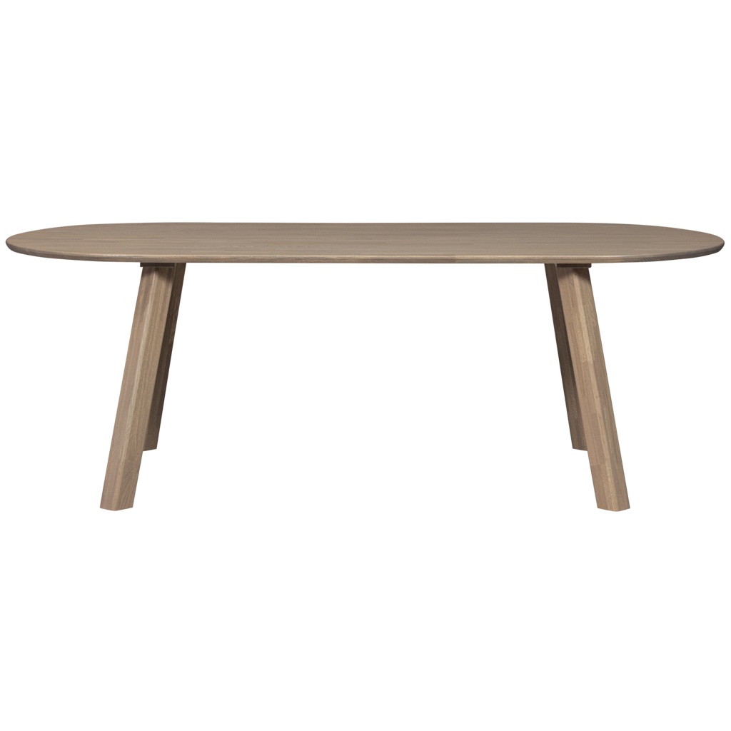-Eikenhouten tafel (FSC mix gecertificeerd) -Creeer jouw ideale eethoek -Tafelblad voorzien van unieke kantafwerking -H 75 cm X B 219 cm x D 89 cm Creeer jouw ideale eethoek met de veelzijdige Tablo-serie van het Nederlandse interieurmerk WOOOD. Met talloze combinatiemogelijkheden en verschillende afmetingen stel je moeiteloos een eethoek samen die perfect aansluit bij jouw wensen. Kies bijvoorbeeld voor dit stijlvolle, ovale tafelblad in combinatie met de veelzijdige Haarlem vier-standen poot. Het tafelblad is voorzien van een subtiele, afgeronde kantafwerking, wat zorgt voor een verfijnde en elegante uitstraling. De tafel is behandeld met een grijze beits, waardoor het hout een prachtige kleur krijgt. Kenmerken De tafel is gemaakt van stroken verlijmd eikenhout met een vingerlasverbinding wat een speels motief creeert. Eikenhout wordt gekenmerkt door de duidelijk zichtbare nerftekening. De natuurlijke imperfecties van het eikenhout maken elke tafel uniek. De tafelbladen zijn licht geborsteld waardoor de nerftekeningen worden geaccentueerd en de beits kleuren nog mooier tot uiting komen. Het eikenhout in onze collecties is FSC mix gecertificeerd. Afmetingen -Hoogte: 75 cm -Breedte: 219 cm -Diepte: 89 cm -Gewicht: 38,8 kg -Maximaal draaggewicht: 50 kg per poot Onderhoud Behandeld eikenhout is zeer eenvoudig in het onderhoud. Houd het meubel regelmatig stofvrij met een schone, droge doek. Verwijder vochtige vlekken direct met een licht vochtige doek en neutraal schoonmaakmiddel, laat het hout aan de lucht drogen. Hanteer altijd de basisbescherming voor hout, zoals het gebruik van een onderzetters onder een drinkglas of een hete pan. Raadpleeg bij beschadigingen een gespecialiseerde verfwinkel voor een eventuele herbehandeling van het meubel. Levering Het tafelblad en de tafelpoot worden apart geleverd en zijn eenvoudig te monteren aan de hand van de bijgeleverde montage-instructie. Plaats voor het beschermen van harde vloeren viltglijders aan de onderzijde van de poten.