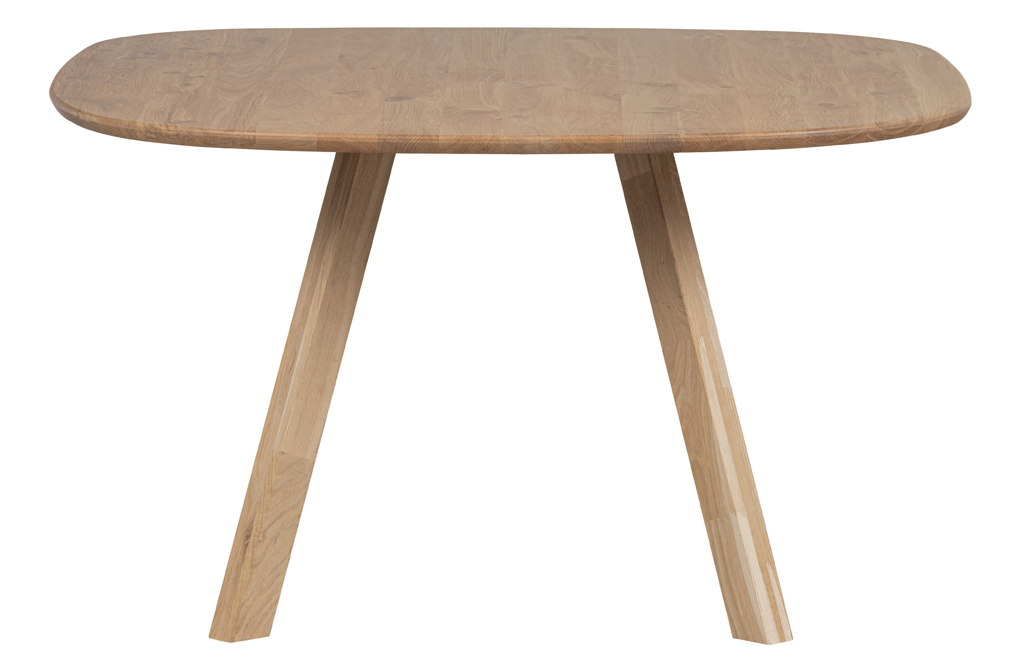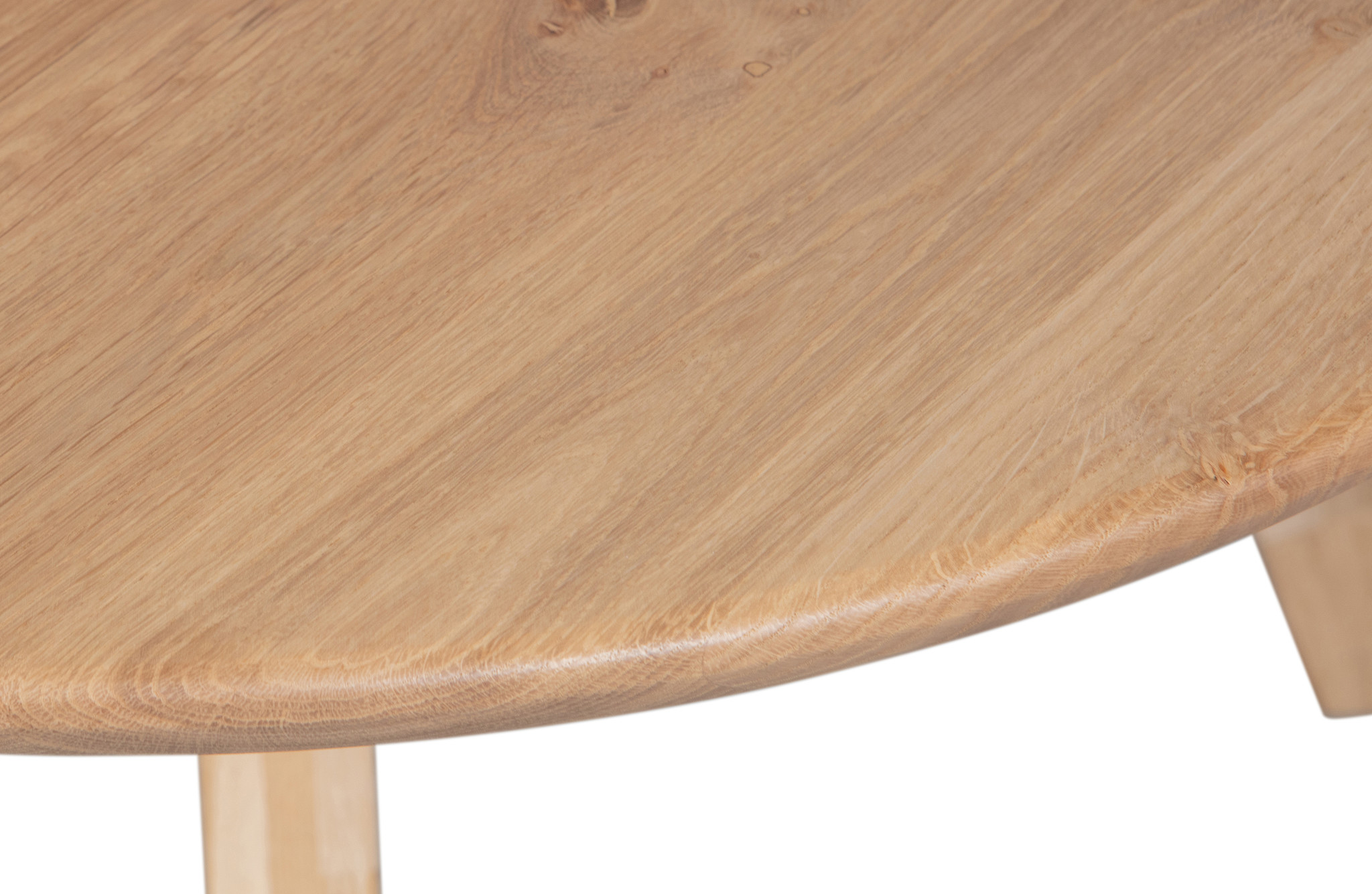 - Playful dining table with organic shape - Table top in natural, sanded oak fullstrip - Frame of untreated, fsc-certified oak - H 75 cm x W 130 cm x D 130 cm Create your ideal dining area with the elements from the Tablo series by Dutch interior design b