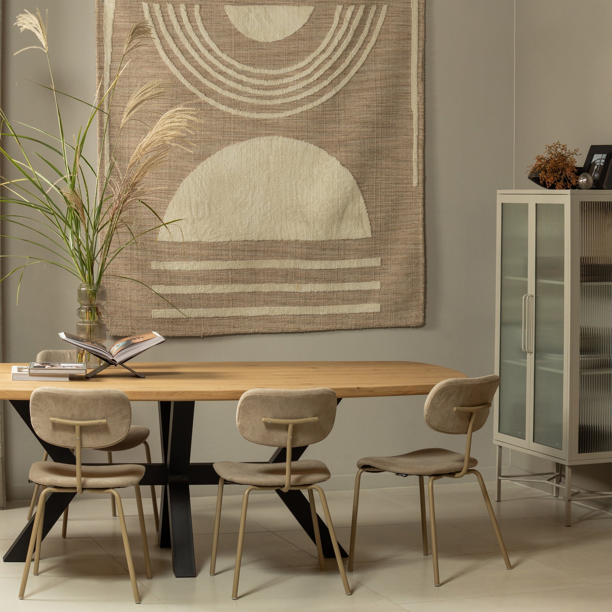 - Oak table top (FSC-certified) - Create your ideal dining area with the Tablo elements - Unique table edge with rounded corners - H 4 cm x W 229 cm x D 115 cm Create your ideal dining area with the elements from the Tablo series by Dutch interior design - Material: 100% pes