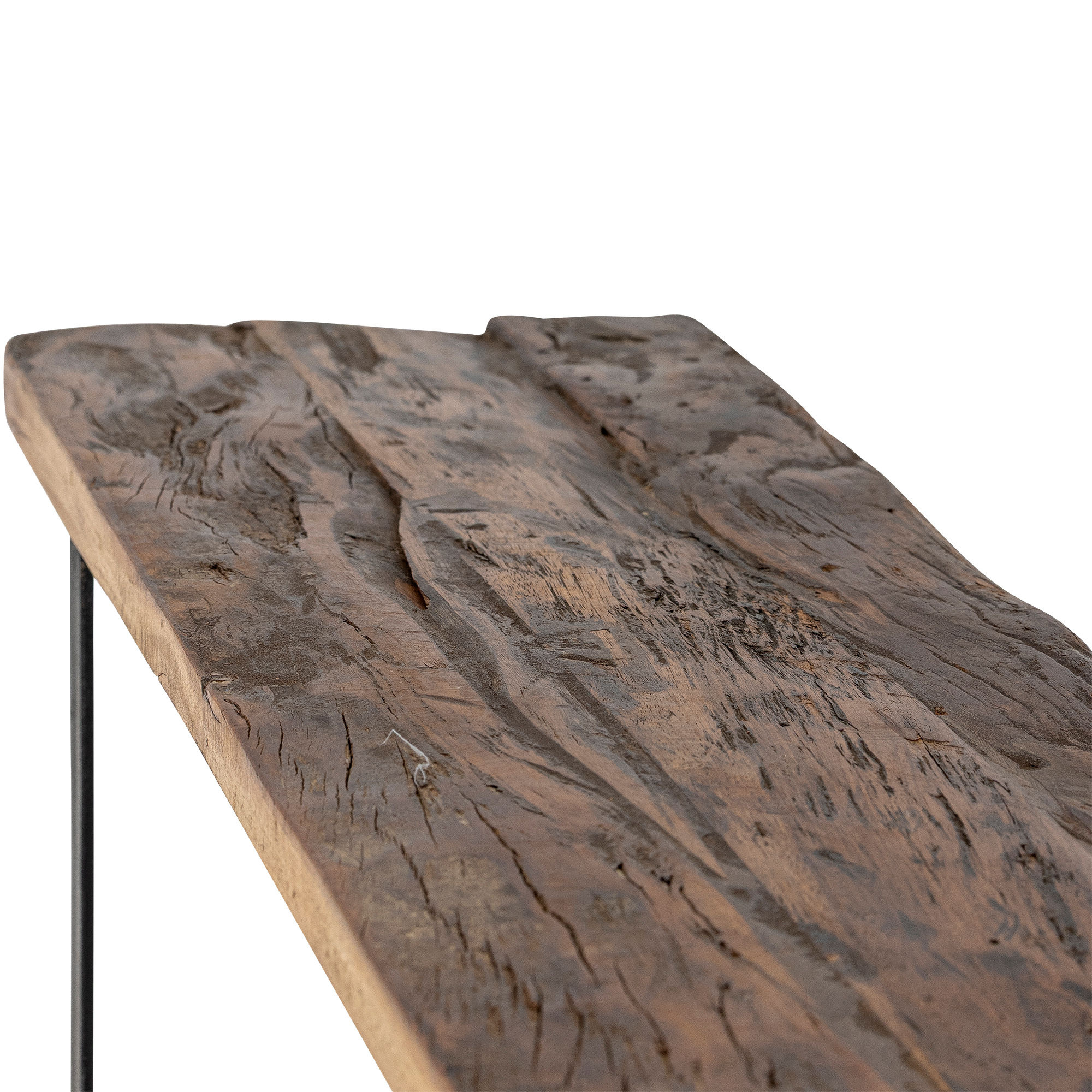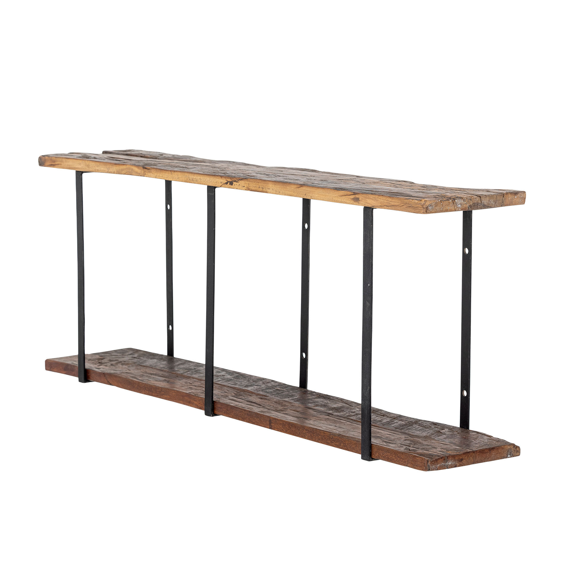 The Tallymay Shelf by Creative Collection is a two-tier design crafted from reclaimed wood with powder-coated iron supports. It has a waxed surface and a rectangular shape that highlights warm brown tones and visible grain. The product is made of natural materials – variations in color may occur, making each piece unique.